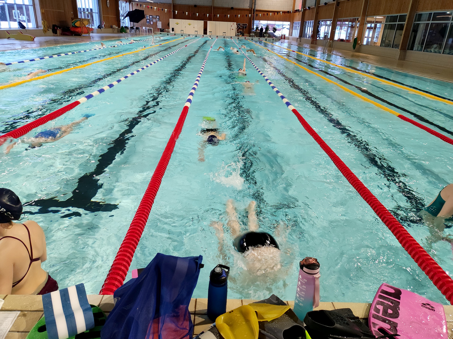 Just den här dagen skiner solen och det är gott om plats i bassängen.