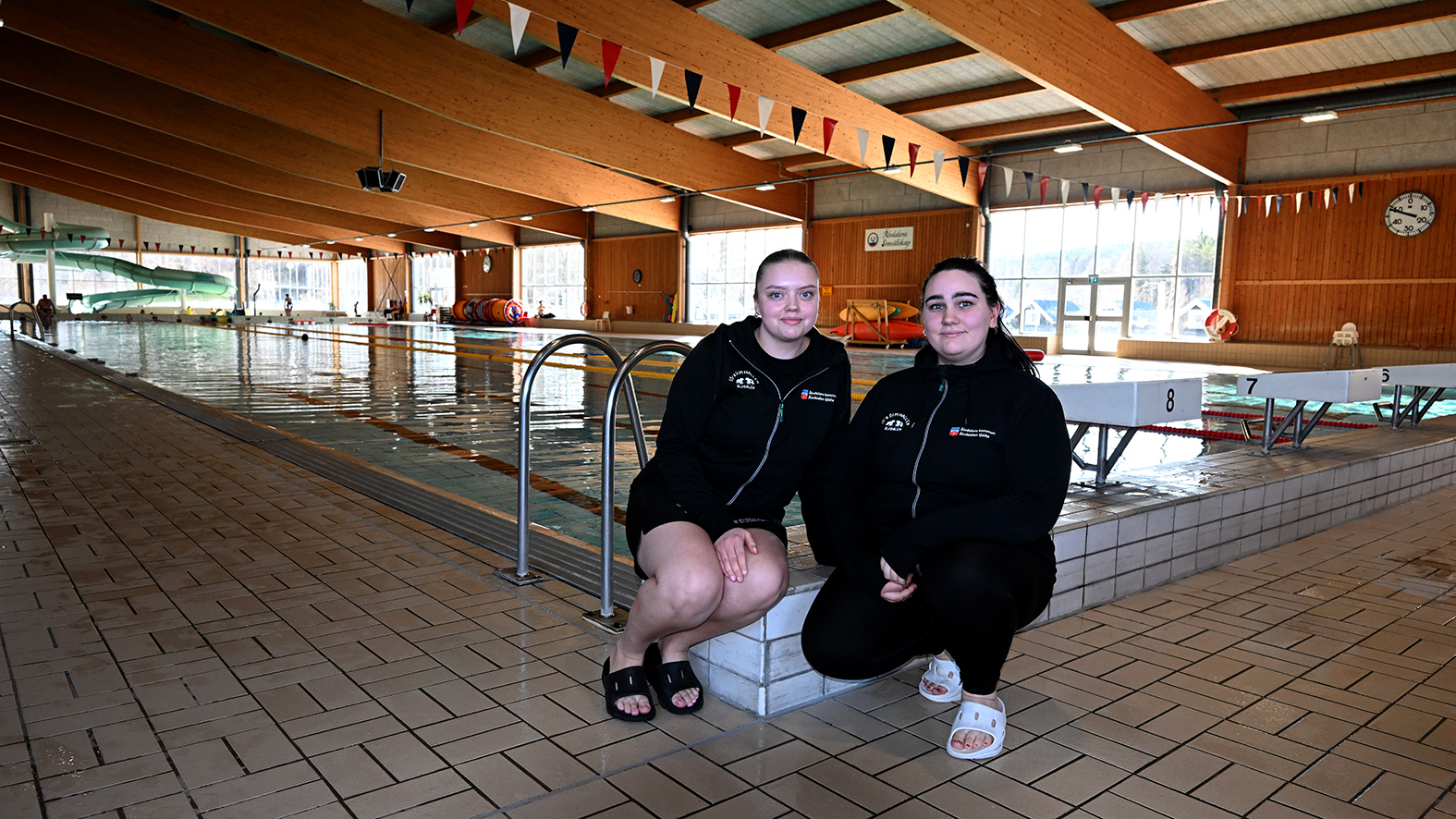 I simhallen jobbar Agnes Hed och Thea Haapanen.