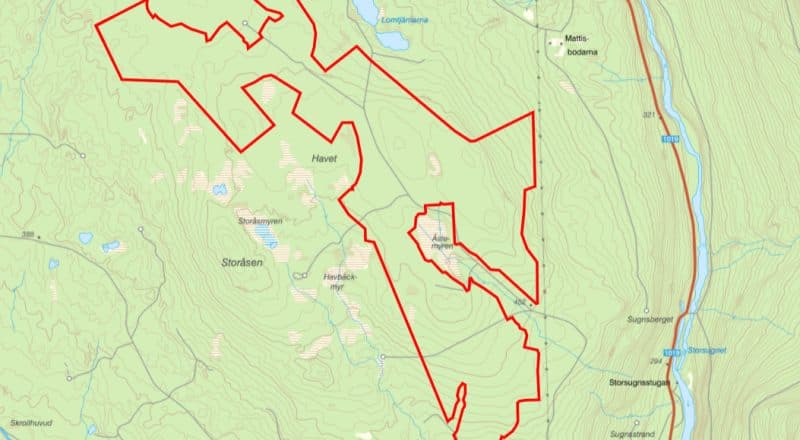 När tillståndsansökan nu skickats in har det ursprungliga området bantats från 600 hektar till drygt 300 hektar.