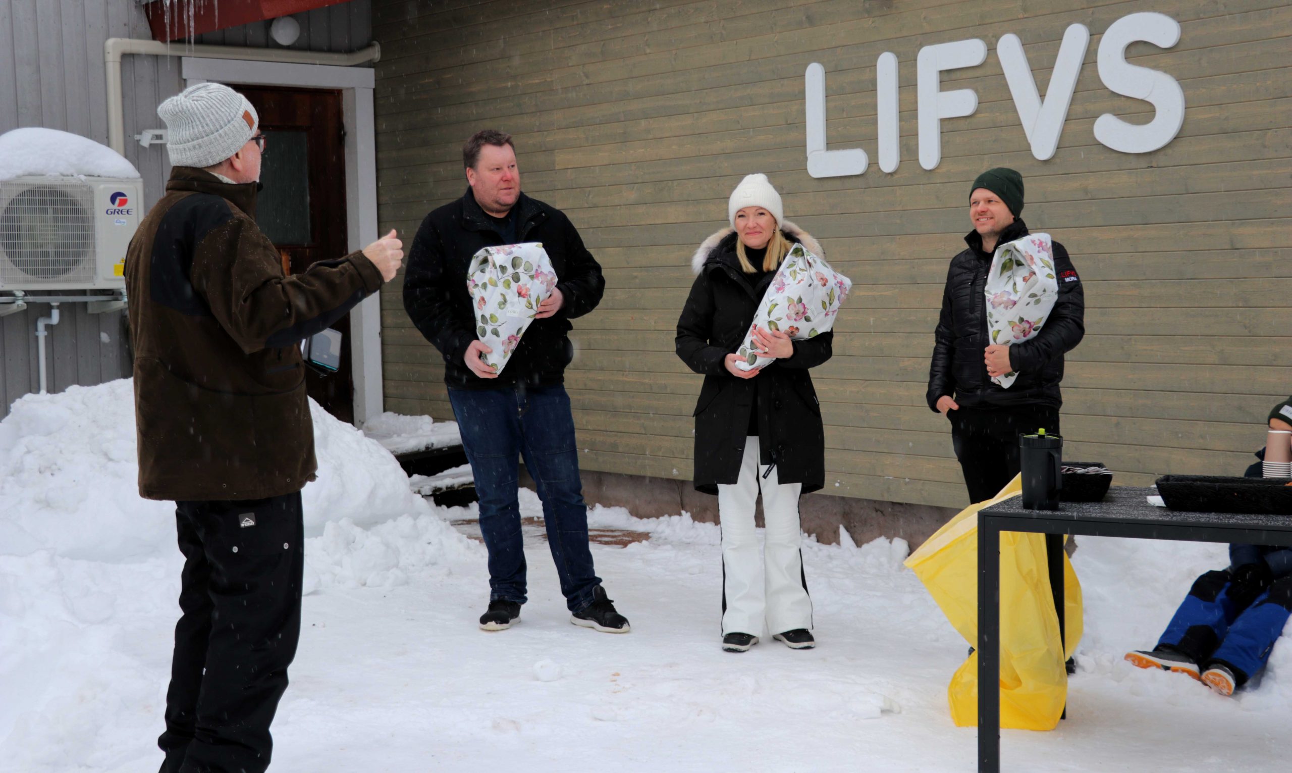 — Vi från byarådet vill visa vår uppskattning, för det här är oerhört fantastiskt, säger Bengt Jonsson, som överlämnade blommor till Joel Zackrisson, fastighetsägaren Jonas Stark och Lifvs-grundaren Bea Garcia.