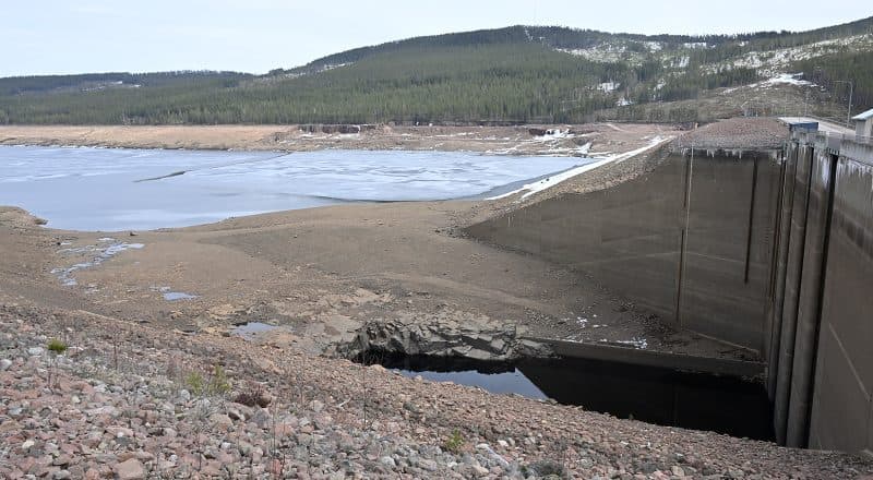 Nu är det så gott som tomt i det stora regleringsmagasinet och nivån låg under måndagen på 390,51 meter över havet. Det är enbart två och en halv meter över lägsta tillåtna nivån som är 388 meter över havet.