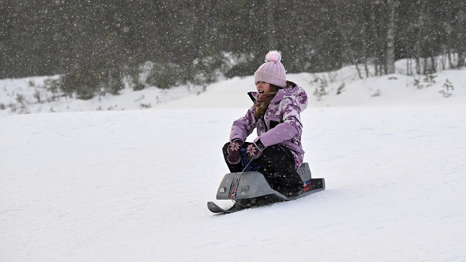 Undantaget var några tappra på skidstadion och i Fjätervålens barnbackar där det gick att åka pulka i stormen.