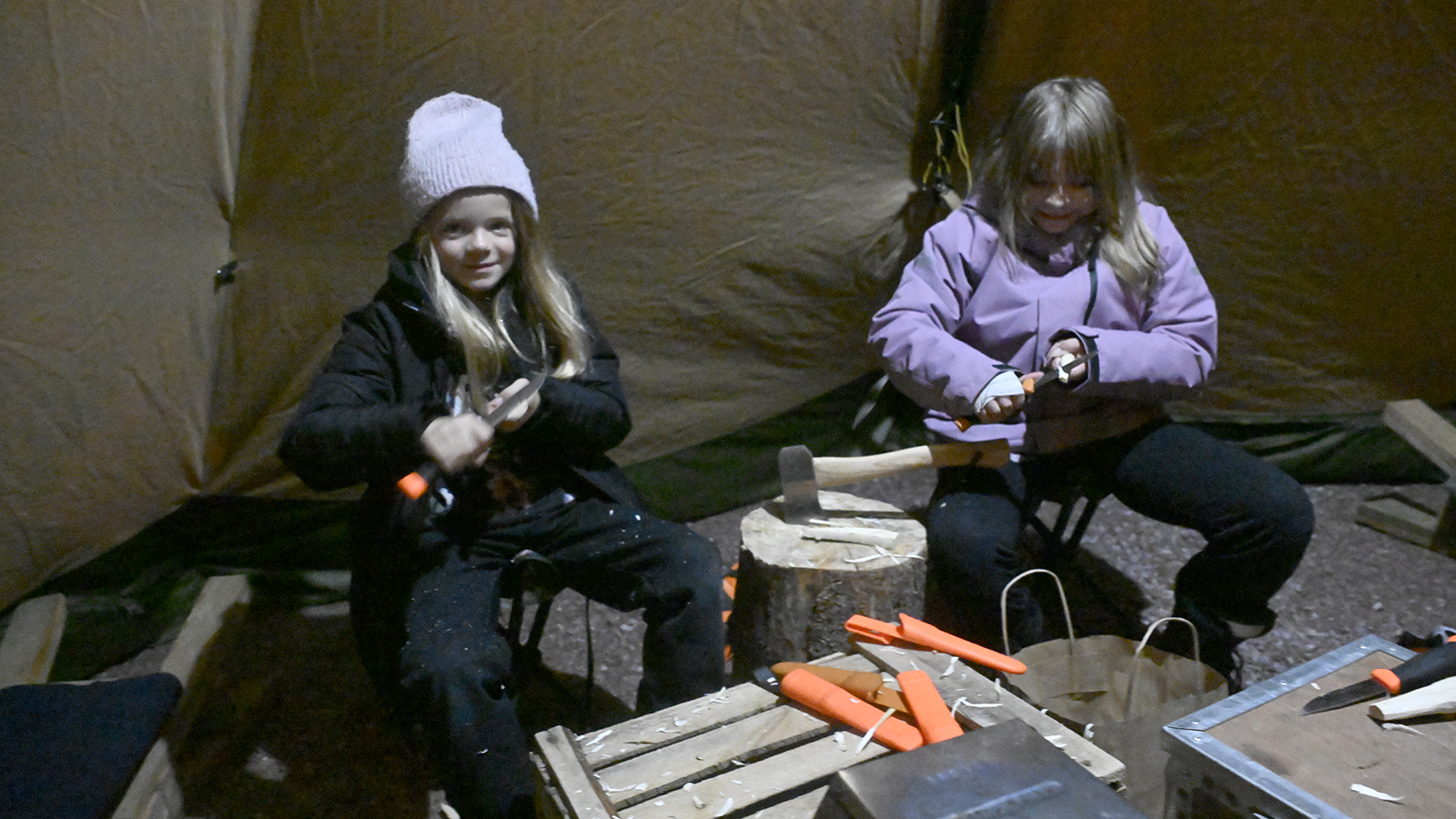 — Det som är roligt är att så många ställt upp på så olika sätt. Vi har folk som klätt ut sig och bidrar till helheten i kojorna och vi har en smed och PRO som gräddar kolbotten och Daniel som fixar krabbelurer, räknar Maria och Linda upp och fortsätter att rabbla namn.