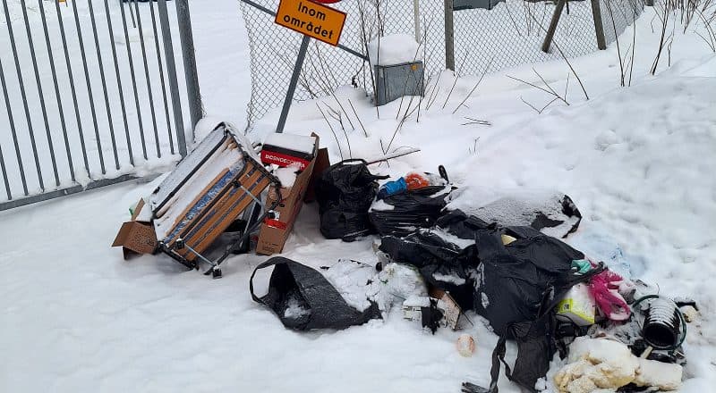 Att lämna avfall utanför en stängd återvinningscentral är olaglig nedskräpning och kan polisanmälas, något som även kan bli aktuellt i det här fallet.