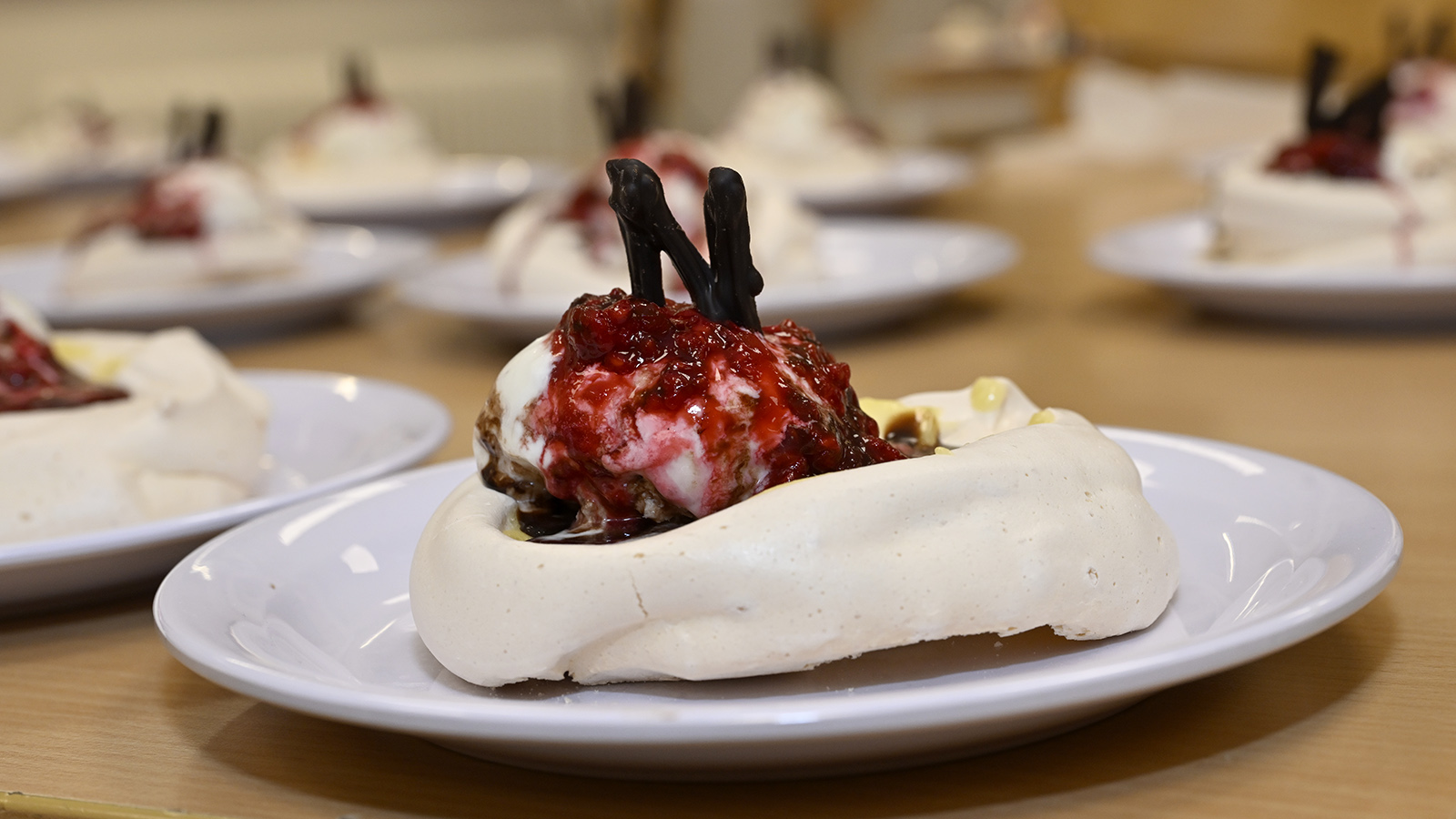 Utöver allt det goda så har eleverna själv gjort dekorationen i form av ett klassiskt Nobel-N till varje desserttallrik.