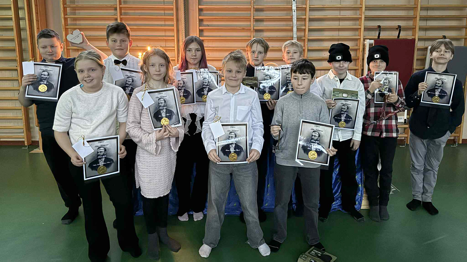 Milian Stenback, Bertil Nylund och Alvin Green i årskurs fyra belönades för en snöspade med dubbla handtag. ”Genom två handtag kan användaren utnyttja styrkan i båda armarna samtidigt, vilket gör det lättare att lyfta och skyffla tung snö utan att belasta kroppen på samma sätt som med en traditionell spade” står det bland annat i nomineringen.
