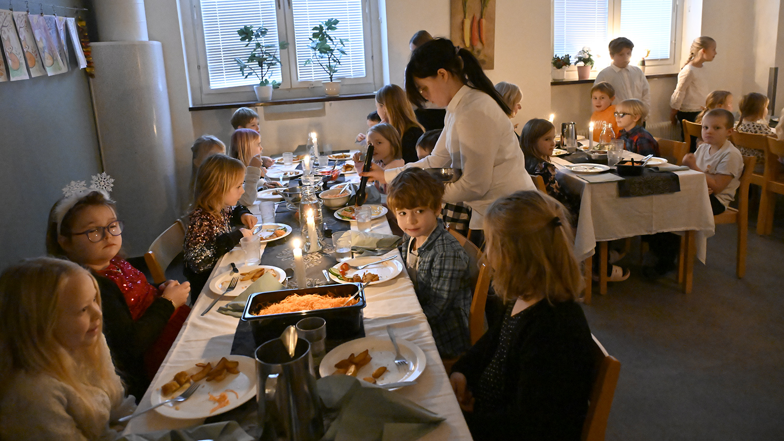 — När vi har serverat klart så är det lärarna som ska servera oss, konstaterar eleverna i årskurs fem gemensamt.