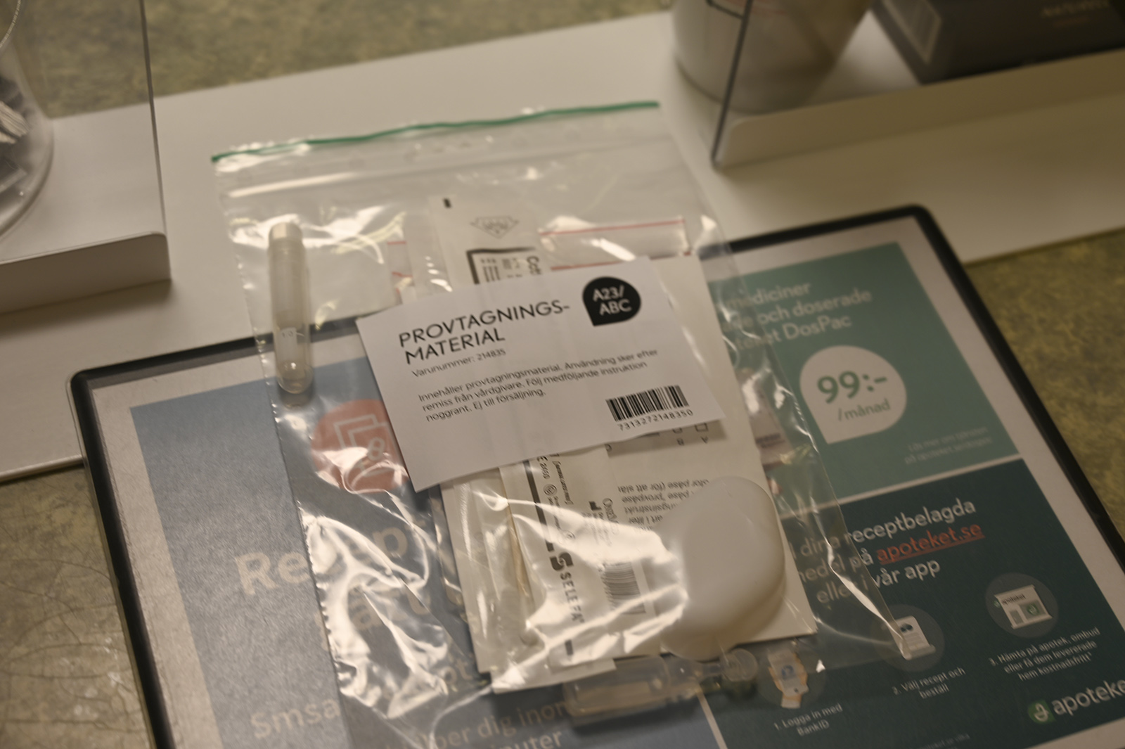 Genomfört test lämnas sedan in på apoteket och skickas sedan vidare till labb.