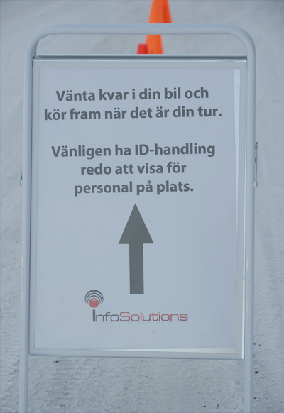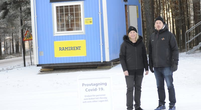 — Det går inte att bara komma hit om man är sjuk och tro att man ska testa sig. Man måste boka tid, annars tar vi inte emot personen, poängterar Kicki Erkers, regionchef Dalarna, när hon och Kalle Nicolausson, Samtrans, tisdag vid lunchtid gjorde i ordning för självtester utanför ishallen på Berget i Orsa.