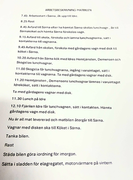 Nytt är nu att det inte enbart är maten som sak rulla mellan Idre och Särna utan nu ska även personalen tvingas att jobba i båda köken på ett rullande schema. Inte så ofta, men i nuläget var sjunde vecka. Något som blir besvärligt för dem som saknar körkort eller inte har egen bil.