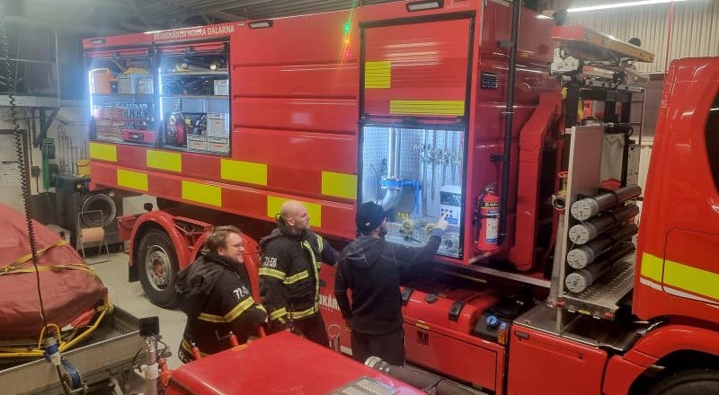 — Det är den bil vi önskat och den ersätter vår väldigt gamla och slitna tankbil, säger Pierre Hedlund, en av deltidsbrandmännen i Särna.