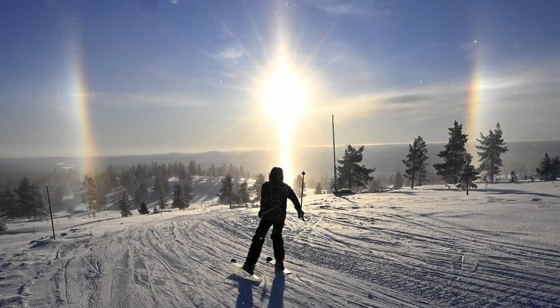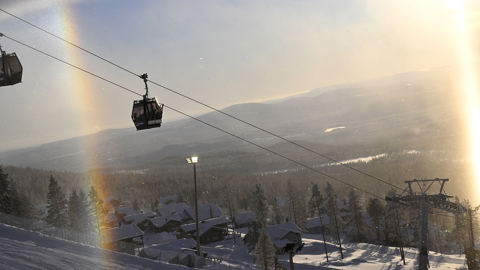 Det har snöat massor och blåst en hel del i Dalarnas fjällvärld, men på lördagen lystes fjällen upp av en strålande sol från blå himmel. Dessutom inramad av haloringar.