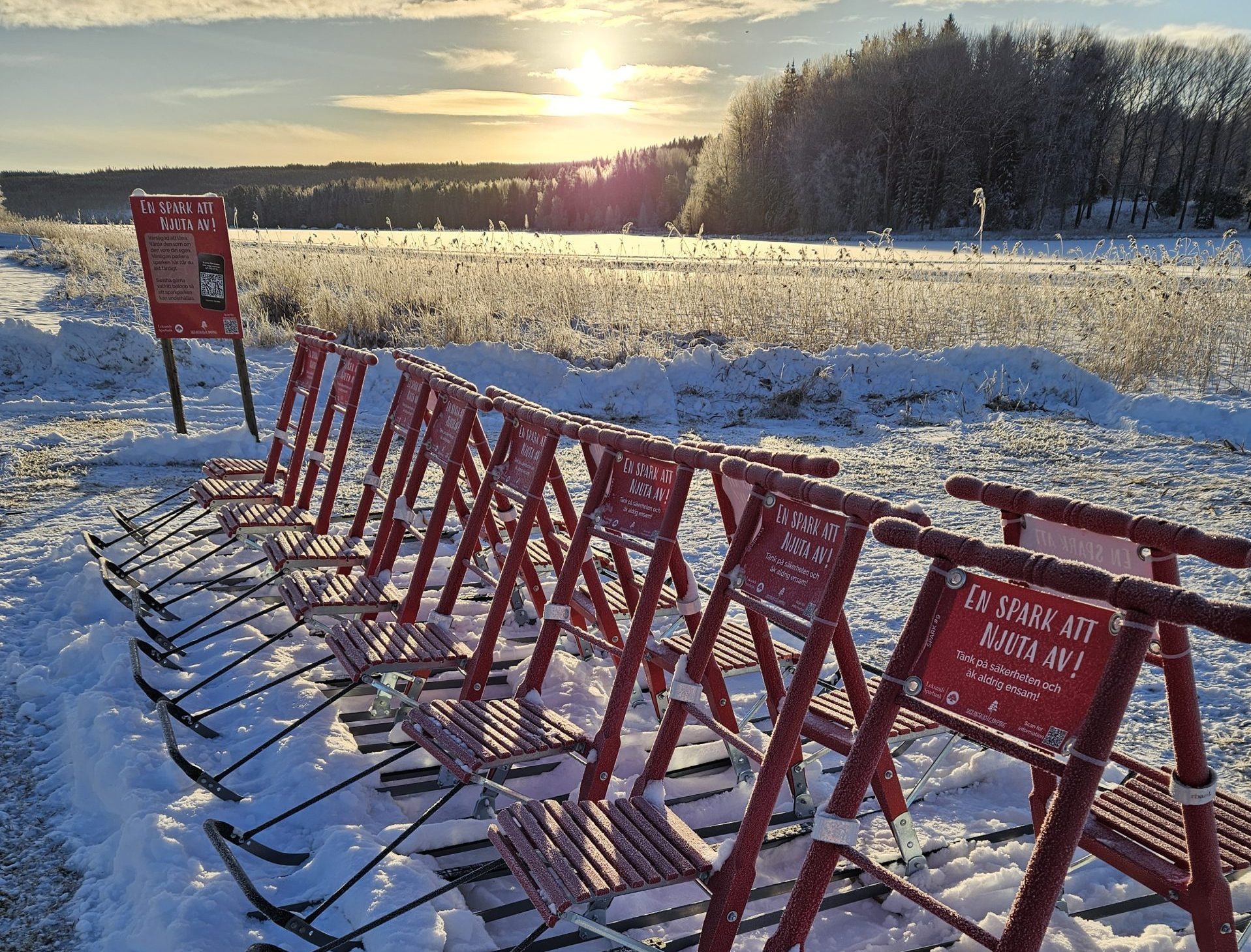 Med lånesparkarna vid Byrviken i Siljansnäs blir den plogade isen en öppen inbjudan till rörelse ute i vinterlandskapet. Två slingor – en kortare och en längre – väntar och längs vägen finns grillplatser och utsikt över frostig natur. Det är helt gratis att låna sparkarna – men pass på, det är en populär aktivitet som lockar många sparksugna.