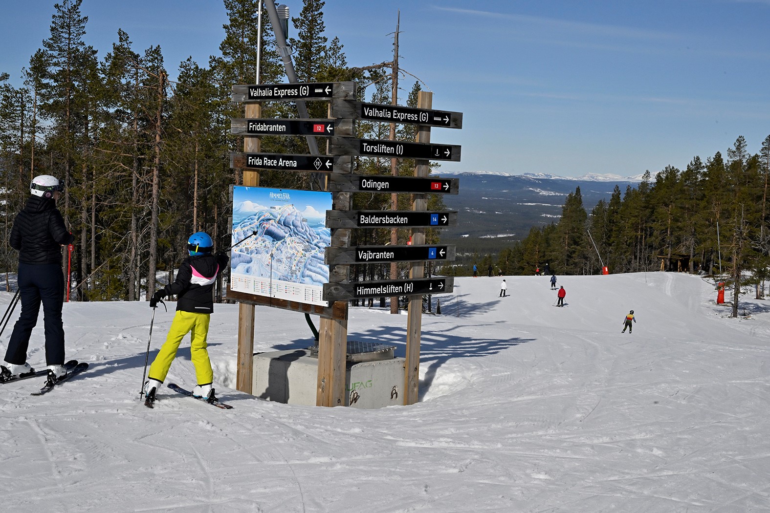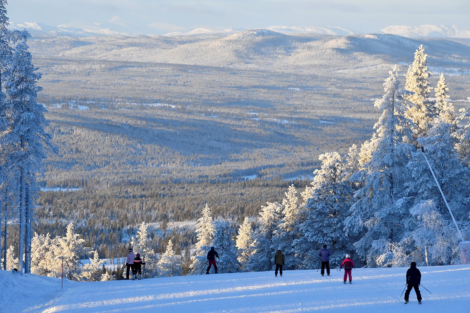 Idre Himmelfjälls pister är också väldigt skyddade mot blåst och de långa nedfarterna från toppen kommer snabbt in i vindskyddad terräng.