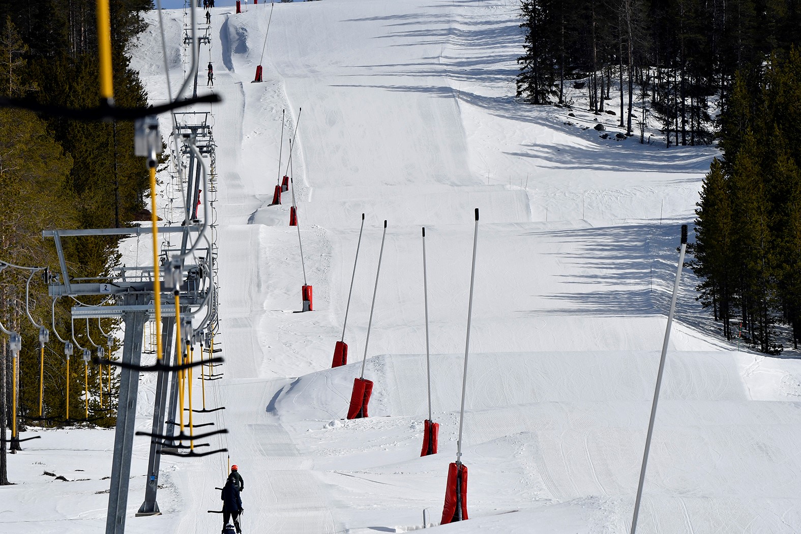 Från sexstolsliften lyfts skidåkaren upp till blå, röda men också en svart pist.