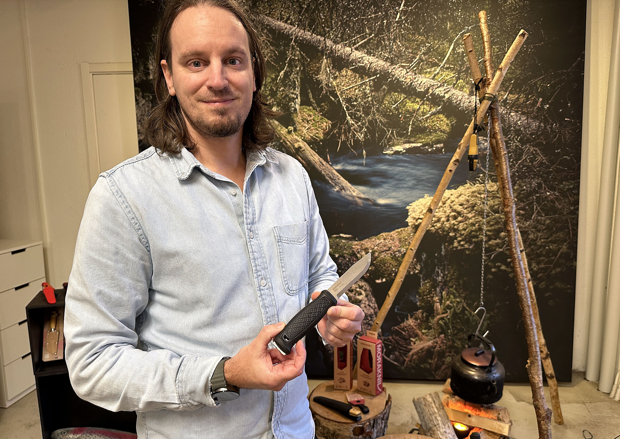 — Morakniv är ju mest känt för röda trähandtag och hantverksknivar, men idag är de största segmenten hos oss friluftsknivar & knivar för slaktindustrin. Förutom detta så har bolaget också ett sortiment av slöjdknivar och köksknivar, berättar Joakim.