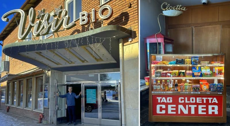 I den anrika biografen från 1956 är det mesta bevarat i original. I entrén sprakar brasan i den öppna spisen när det är visningsdags, kiosken andas retro med sin klassiska Cloetta-skylt och även utbudet är noggrant utvalt för att passa den tidstypiska atmosfären. I salongen finns 302 platser och bio är såklart hjärtat i verksamheten, men nu finns stora planer på att bredda utbudet.