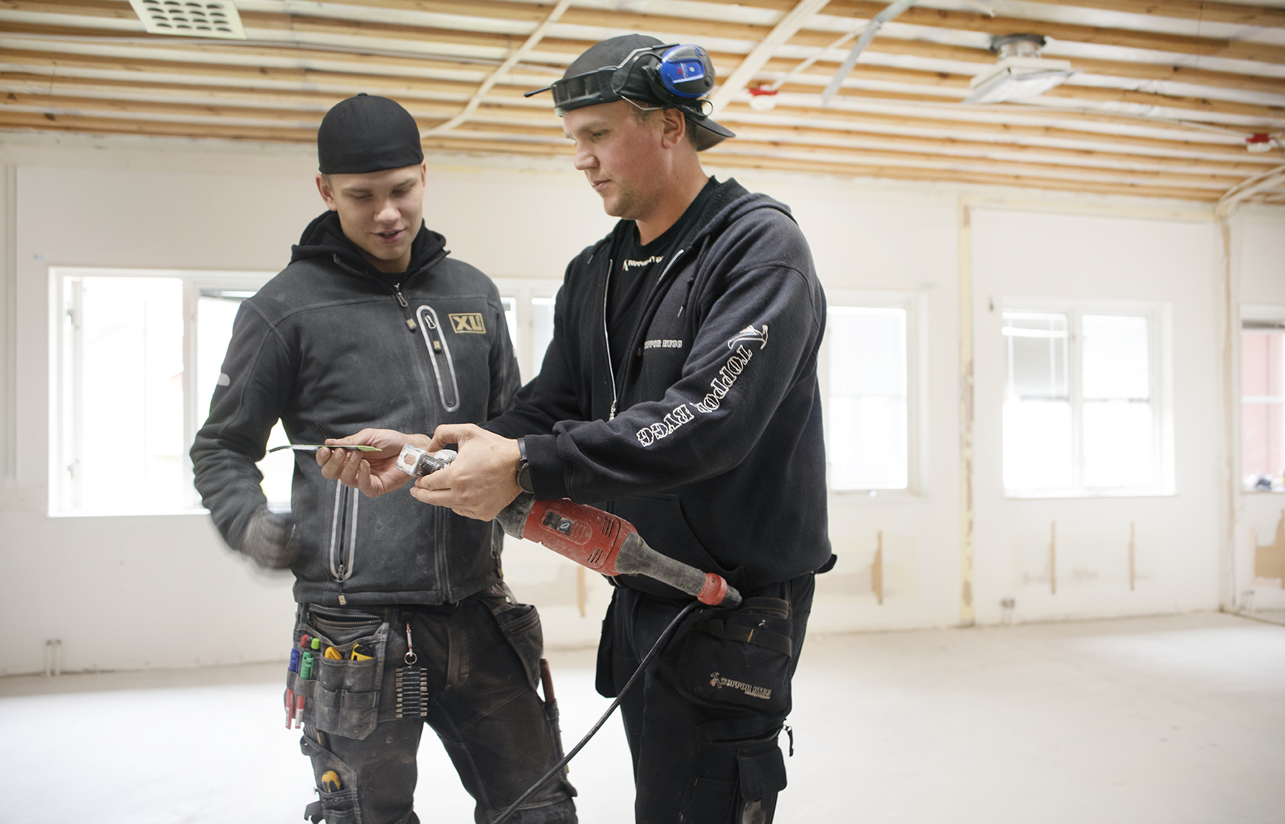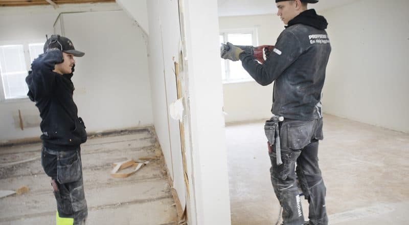 I Leksandsbostäders Grewesmühl i korsningen Faluvägen/Stationsgatan river man väggar och golv, här ska åtta nya lägenheter byggas. Projektchefen på Leksandsbostäder Alf Lilletofte berättar att det här är ett steg man tar för att förtäta i befintliga byggnader och för första gången har man inlett ett projekt med skola och arbetsliv. Det är totalentreprenören Toppor Bygg och byggelever från Stiernhööksgymnasiet som tillsammans ska utföra arbetet.