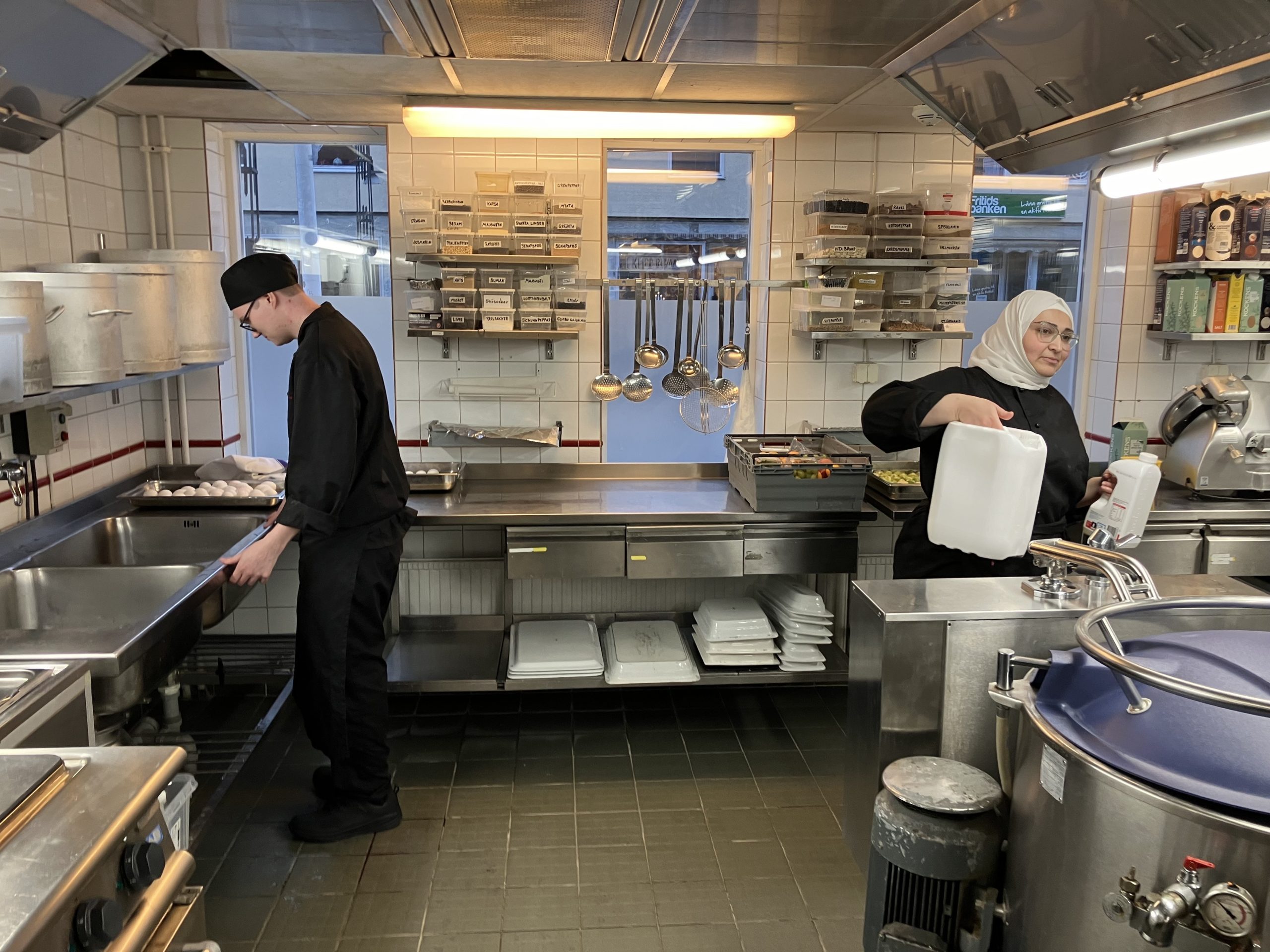 — De har lite svårare med svenskan. De går här samtidigt, lagar mat och försöker lära sig språket och yrket. Sedan går de in på den vanliga utbildningen, säger Roland Knutsson.