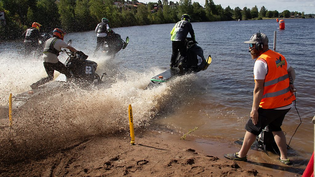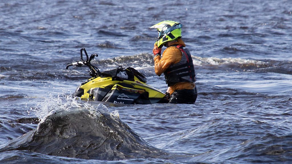 Just vågorna gjorde att många tävlande fick se sin skoter sjunka. Men bärgningarna gick snabbt och strax efter att de bärgats var nästa heat igång.
