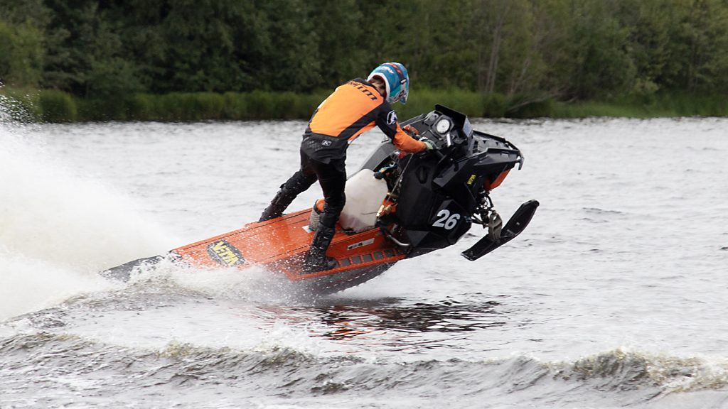 Sporten blir allt populärare i Sverige och går ut på att åka snöskoter på vattnet längs en bana med slalom och hopp. På CCW fick man köra tre varv och på valfritt varv hoppa en gång med sin skoter. Sedan gick de med mest poäng vidare till final.