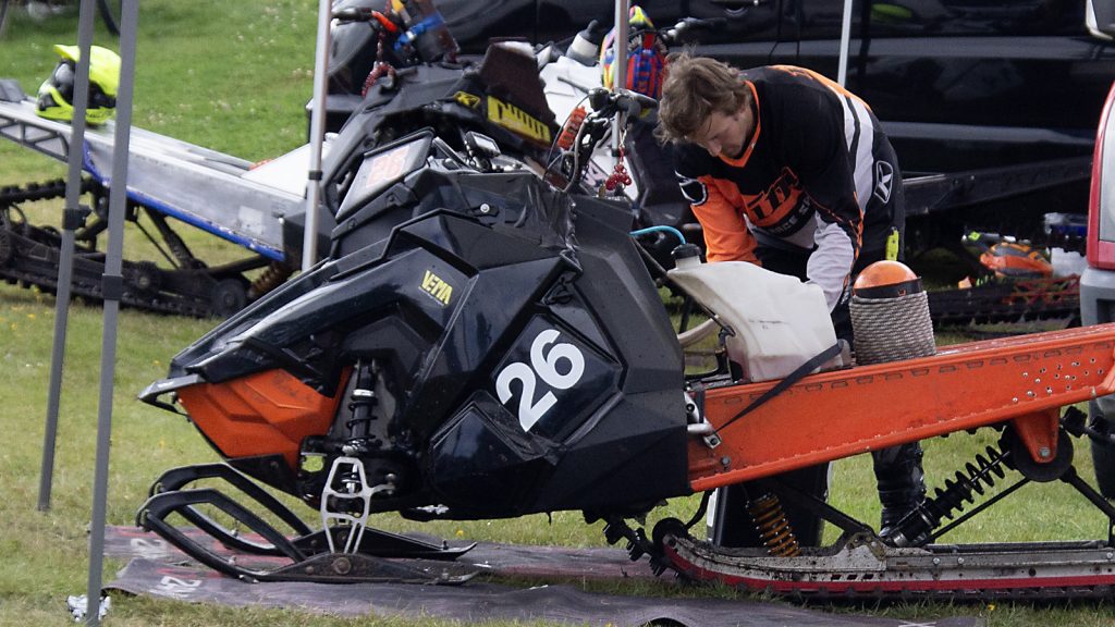 — Mitt i tävlingen började tanken glida av min Polaris Axys -16, jag tappade lite fokus men lyckades hålla kvar den, berättar Måns när han är tillbaka i depån och meckar med sin maskin. Måns tog sig därefter till C-final innan han fick se sig besegrad.