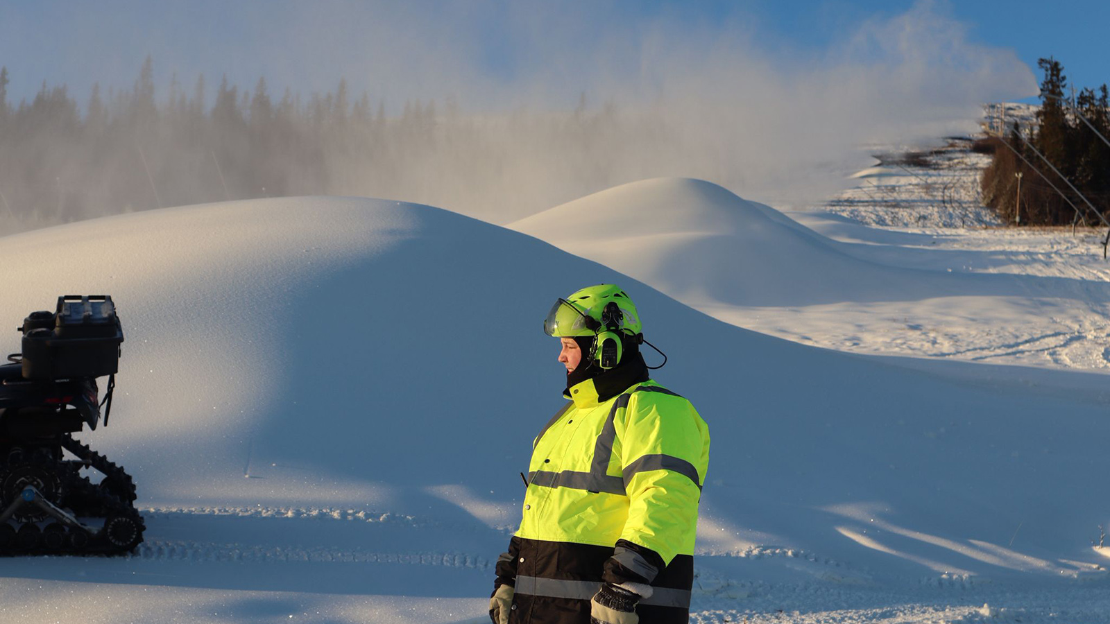 — Vi passar nu på att lägga snö lite högre upp i den stora backen när vindarna är gynnsamma för det. Sedan ska vi också lägga liftspår.