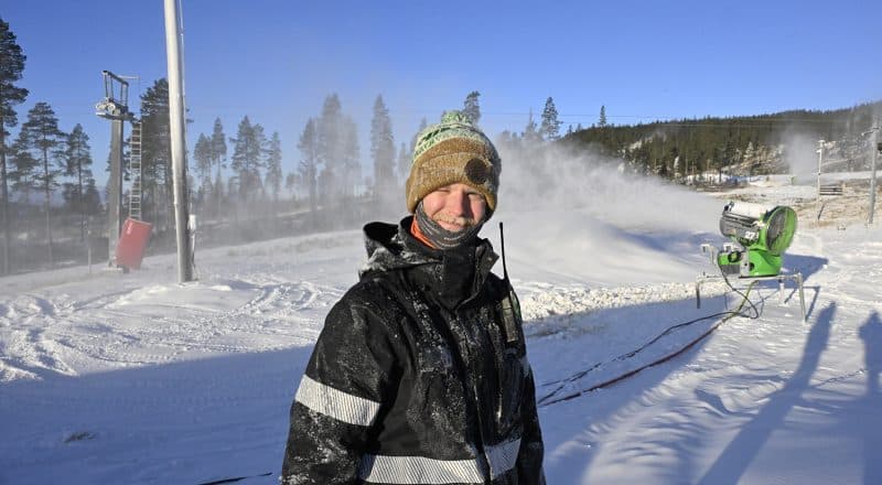 — Sedan jobbar snökanonerna vidare och nästa helg öppnar familjebacken för träningsgrupper och sedan öppnas hela anläggningen den 12 december, säger Gustav Eriksson.