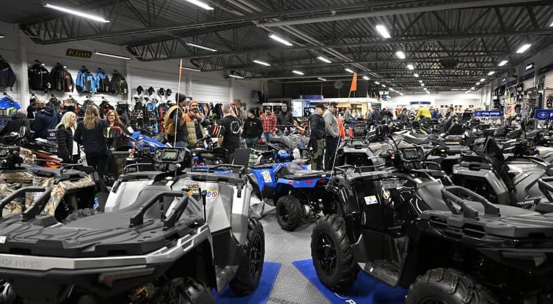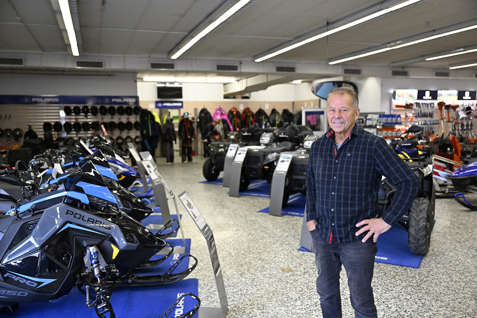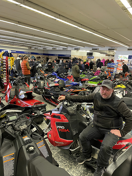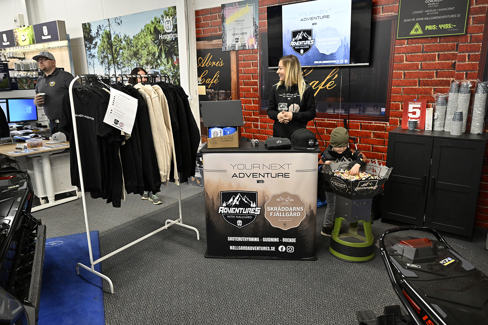 På andra sidan Mora, på Örjastäppan, var det lika fullt i Abris andra stora skoterbutik.