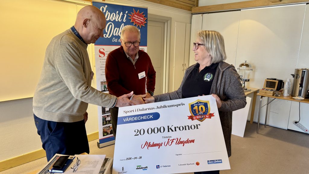 I vanliga fall får en rad olika eldsjälar runtom i Dalarna dela på 70.000 kronor, pengar som skickas vidare till önskade förening men nu, detta jubileumsår, ville gänget bakom Sport i Dalarna göra en extra utdelning. Tre dalaföreningar fick på tisdagen ta emot ett ekonomiskt bidrag, ett välkommet klirr i kassan, under en träff på Gyllene Hornet i Tällberg.