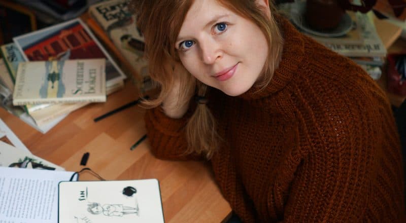 — Jag visste att jag ville bli illustratör, men det fanns ingen utbildning som passade, så jag läste grafisk design. Sen hade jag en fantastisk tur. Jag gjorde illustrationer och la ut på internet och sen var det ett förlag som sett det och hörde av sig.