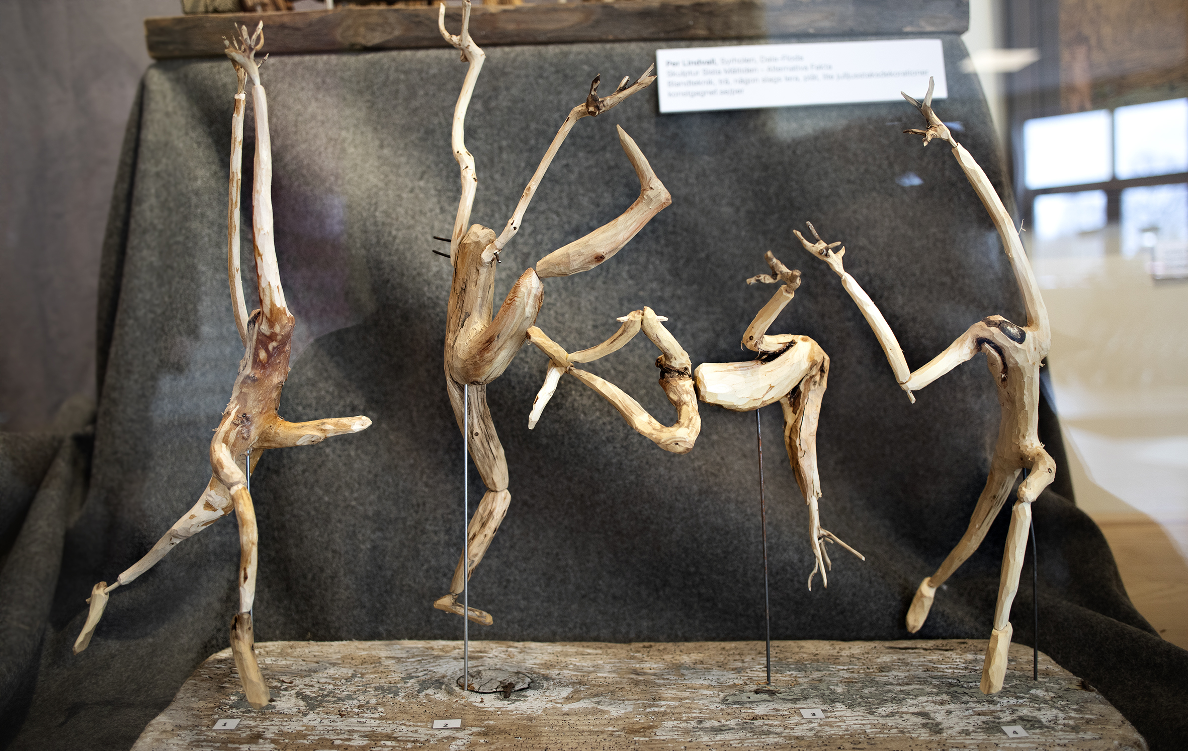 I fredags arrangerade man skyltfönsterutställningen, med fyrtiofyra verk av lokal konstnärer och konsthantverkare. Gagnefs kommunen har låtit trycka upp affischer samt lånat ut de tomma skyltfönstren som nätverket nu fyllt med bland annat foton, akvareller, broderi, keramik och träkonstverk. De visar runt i de rödramade skyltfönstren. Där står tovade högskaftade inneskor, rikligt broderade med yllegarn bredvid en blå-gul spiralgalax i tagel och rosengångskudde.