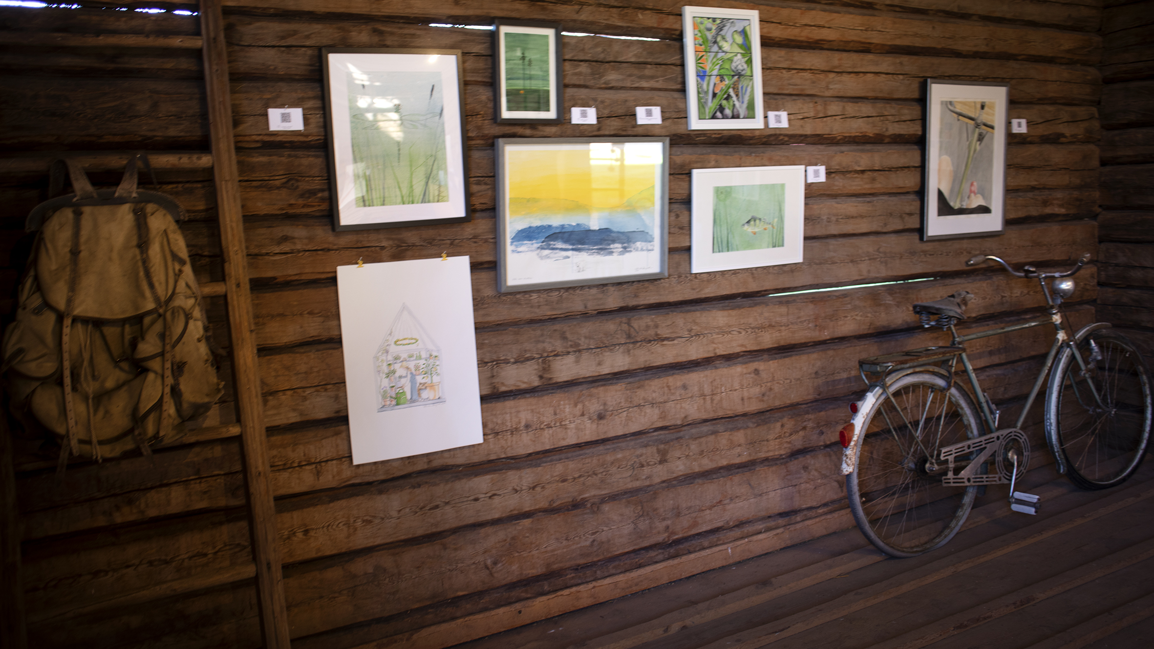 — Jag har skapat i hela mitt liv och jag har inspirerats otroligt mycket av min släkthistoria från Svedjan och Nås, speciellt alla livsöden. Men även klimatkris och utanförskap snirklar sig in i hennes verk. Akvareller, akrylmålningar och tryck och pappas gamla cykel och morfars klätterträd visas upp när hon för första gången visar ett stort antal av sina verk.