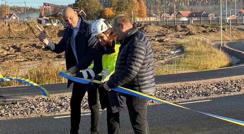 På plats fanns Fredrik Jarl (C), kommunstyrelsens ordförande, och Jan Wiklund (M), ordförande i barn- och utbildningsnämnden, tillsammans med representanter från Trafikverket och Svevia när vägporten i Moje skulle öppnas.