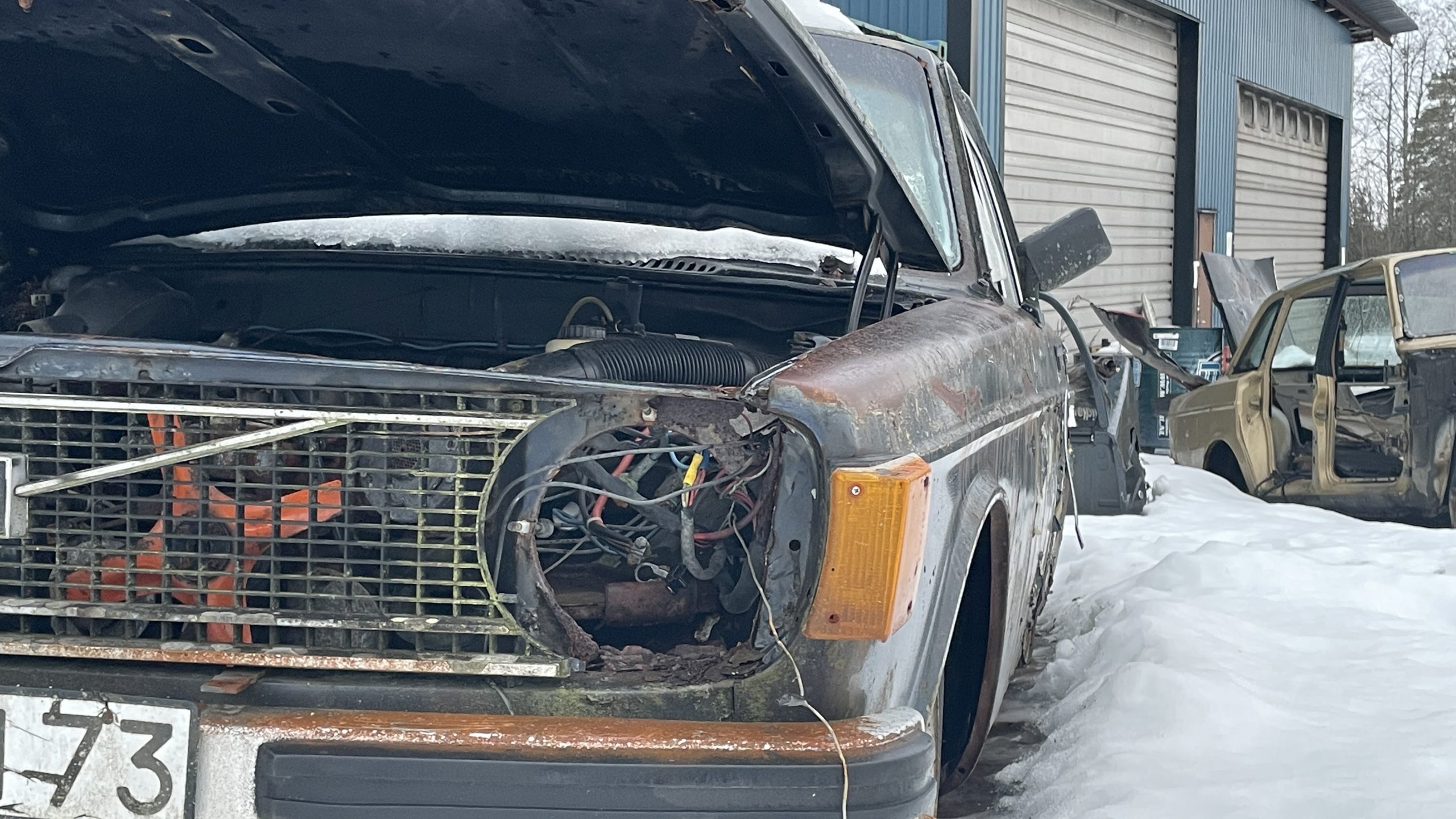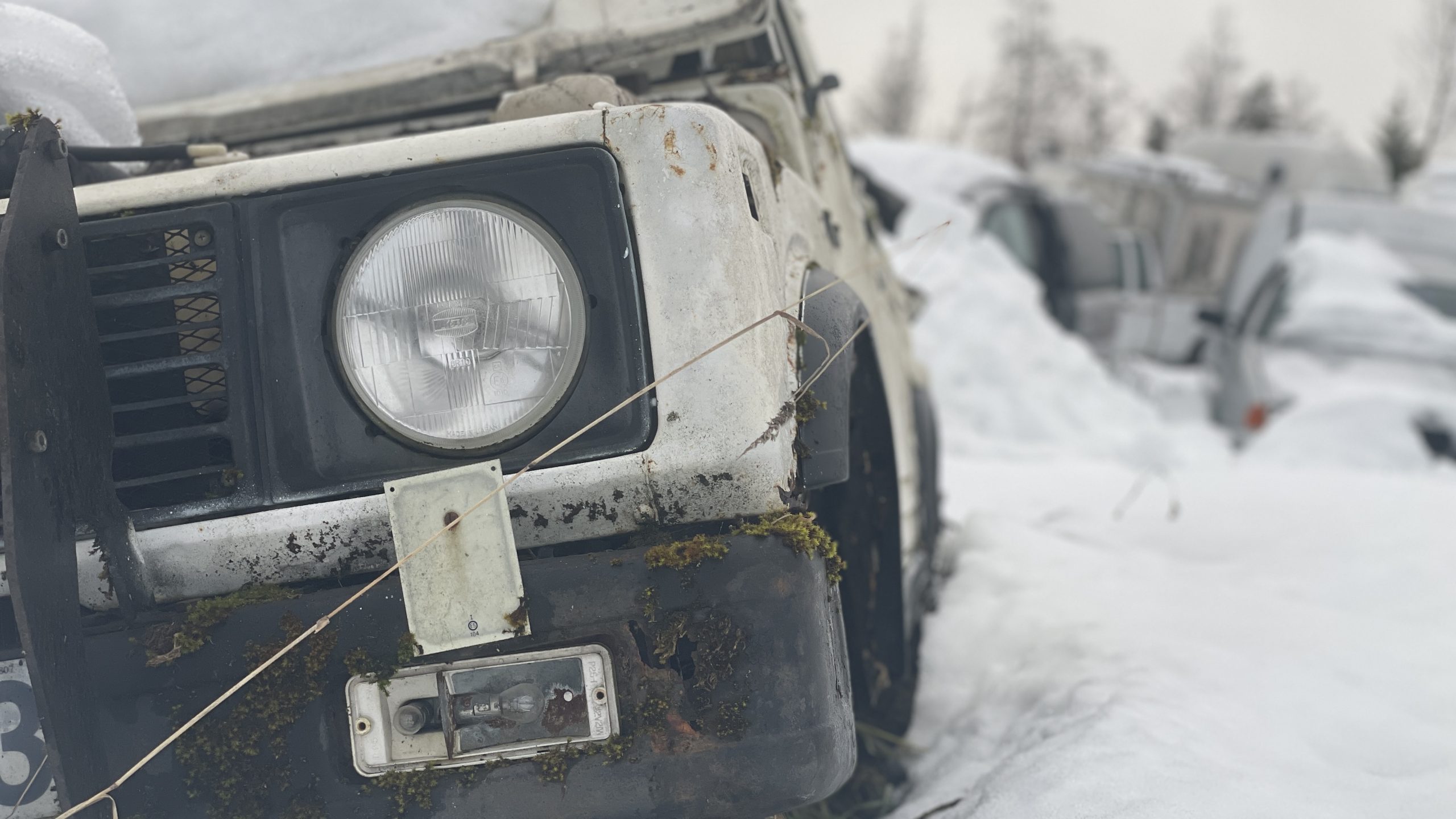 Det är lite av en bilkyrkogård uppe vid skroten där bilar i olika skick fått avsluta sitt rullande. Längst ner på åkern finns de äldsta bilarna som stått så länge att de i princip blivit ett med naturen. Just nu är bilarna täckta av snö men under många somrar är det just där som många bilentusiaster gjort fynd under Classic Car week när det varit sakletardag uppe på skroten.