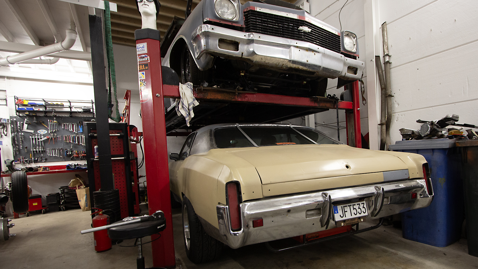 Alla kunder till trots så tar sig Thony tid till att mecka med två egna jänkare. Speciellt en av dem som är hans drömbil.