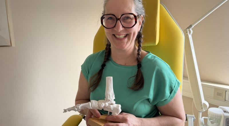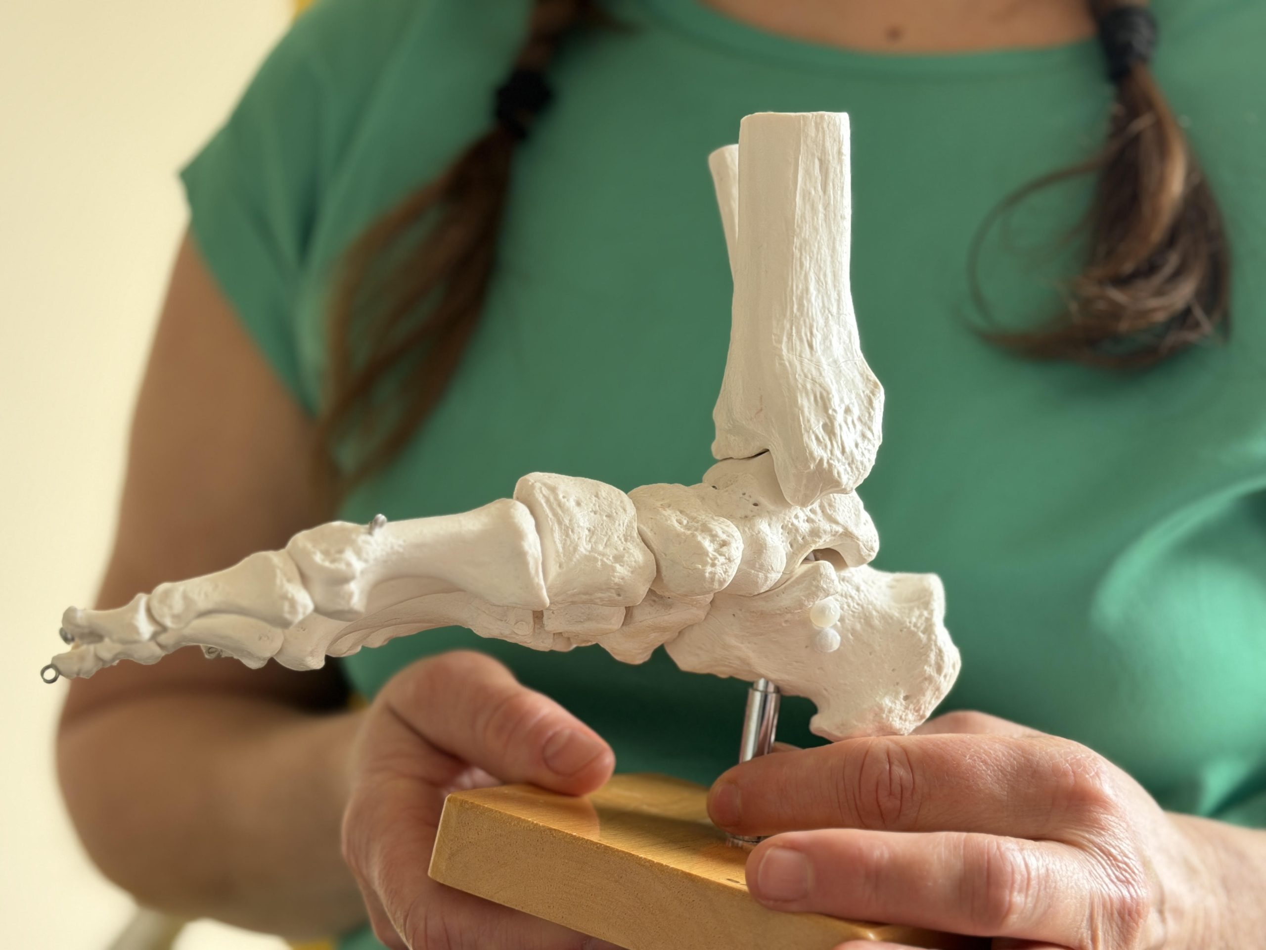 — Alla skriver ju samma sak när man går till läkaren. Har man något problem med hälen, så är det hälsporre. Men det kan vara hur många olika saker som helst, säger hon och visar skelettet av en fot.