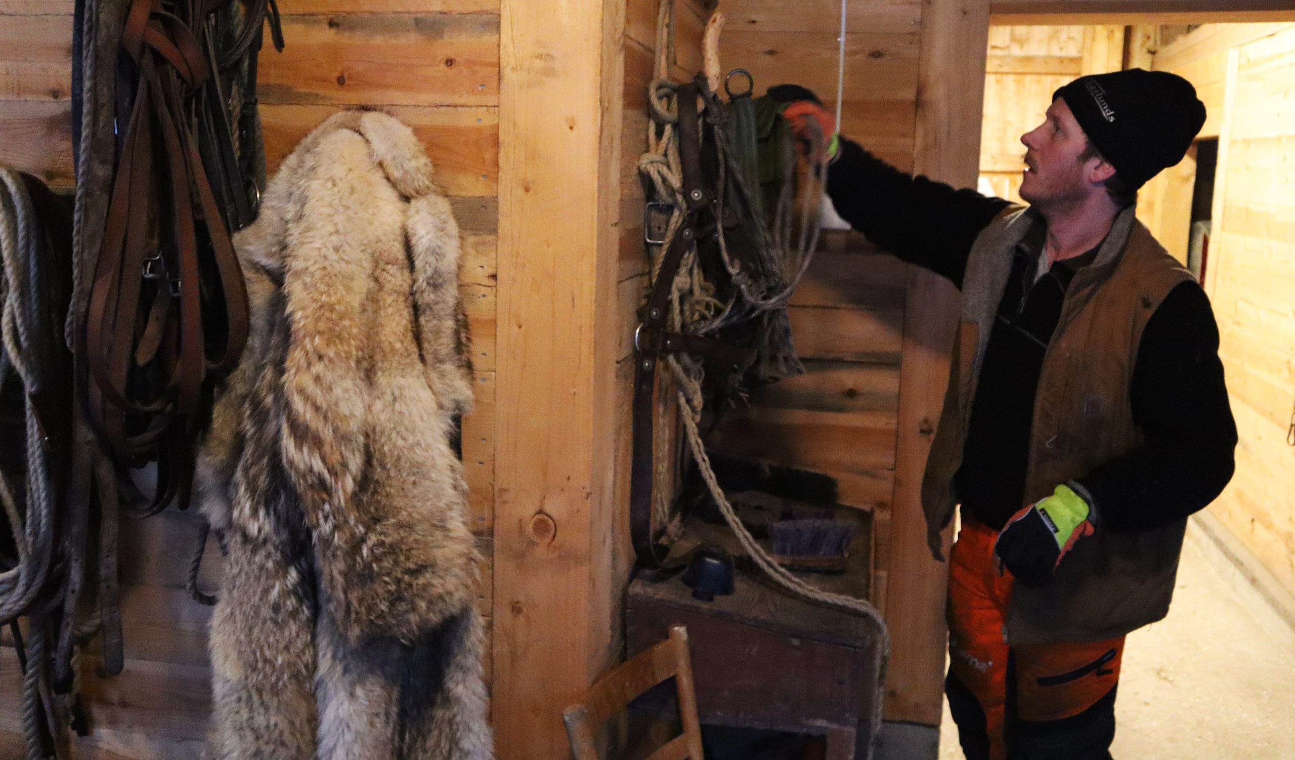 På en krok i stallet hänger en rock i päls. Den brukar Emil klä sig i när han kör häst och vagn på marknader på vintern. Det är en päls som brukar väcka frågor och nyfikenhet, och rocken är inte helt okontroversiell. Den är nämligen gjord av vargskinn.