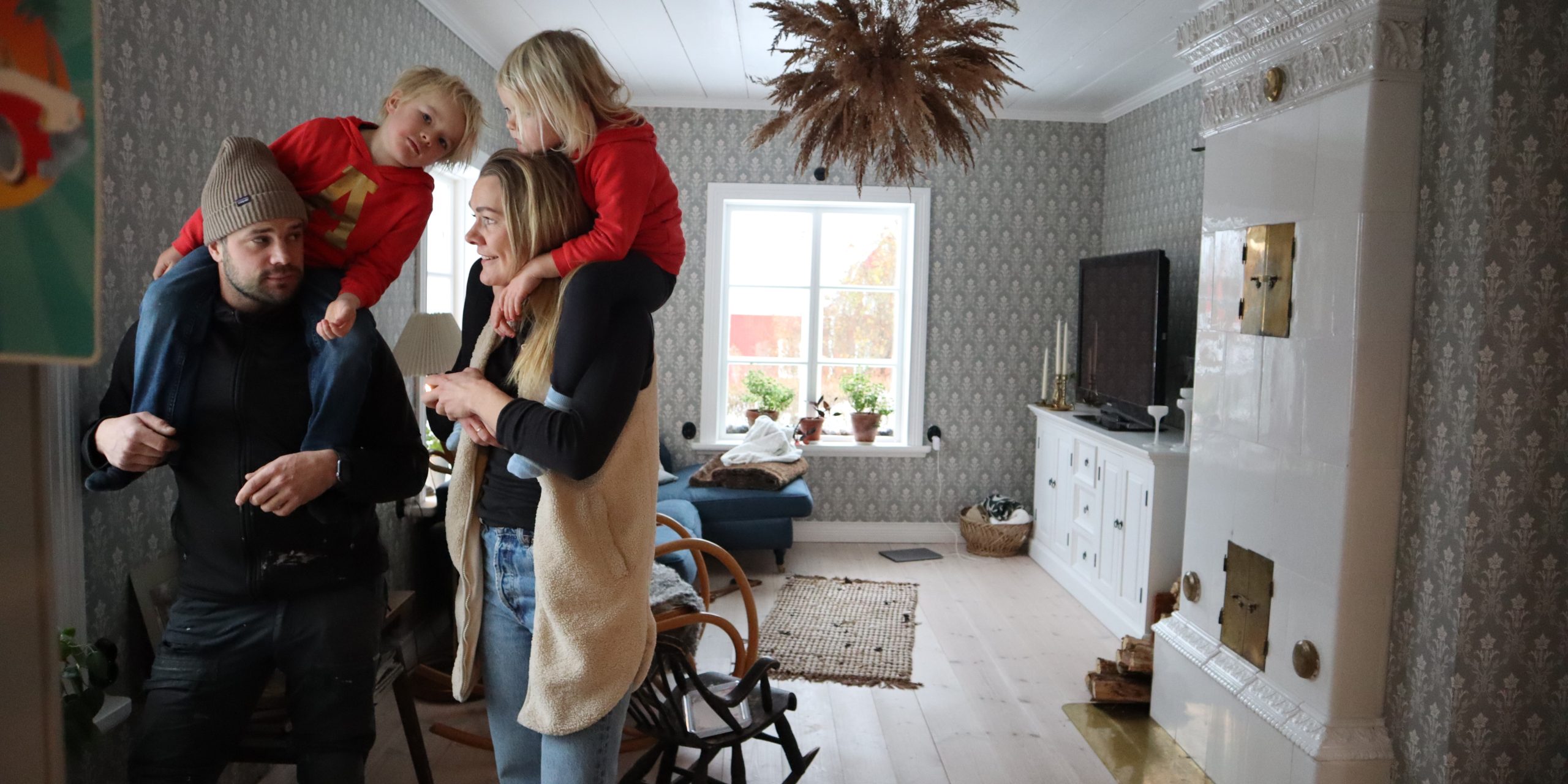 Barnen har sina mor- och farföräldrar nära inpå och de spenderar ofta tid tillsammans. Idag har de varit utomhus och lekt hela förmiddagen. Det 34-åriga paret berättar varmt om sin hemort och de försöker ta pauser i all renovering så ofta de kan för att hinna njuta av hembygden tillsammans med sina barn. Med nya mountainbikes har familjen kunnat ta sig ut i skogen och cyklat Sången runt. Vid Flosjön möter familjen upp vänner och bekanta, sjön är som en samlingsplats för hela bygden. Där finns en liten bastu, badplats och för den äventyrslystne kan en båttur till den lilla ön i mitten av sjön stilla begäret.