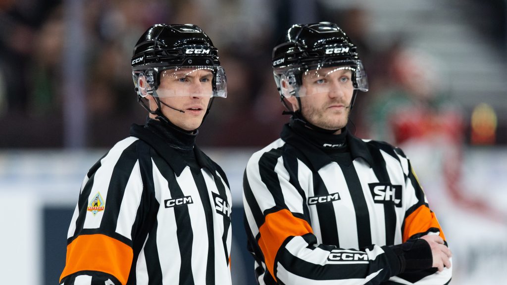 2018 var det sedan dags. SHL-premiären stod för dörren och det på hemmaplan. Eller ja, hemmaplan och hemmaplan, under vårt samtal på Siljans Konditori kommer vi ofta tillbaka till det faktum att hockeydomare i stort sett aldrig har någon hemmamatch. Det är ett liv kantat av resor och hotellnätter. SHL-debuten ägde dock rum i Mora där hemmalaget tog sig an Frölunda. Som domarkollega fick Holm med sig ett av de mest rutinerade namn som fortfarande är aktiva, Mikael Sjöqvist.