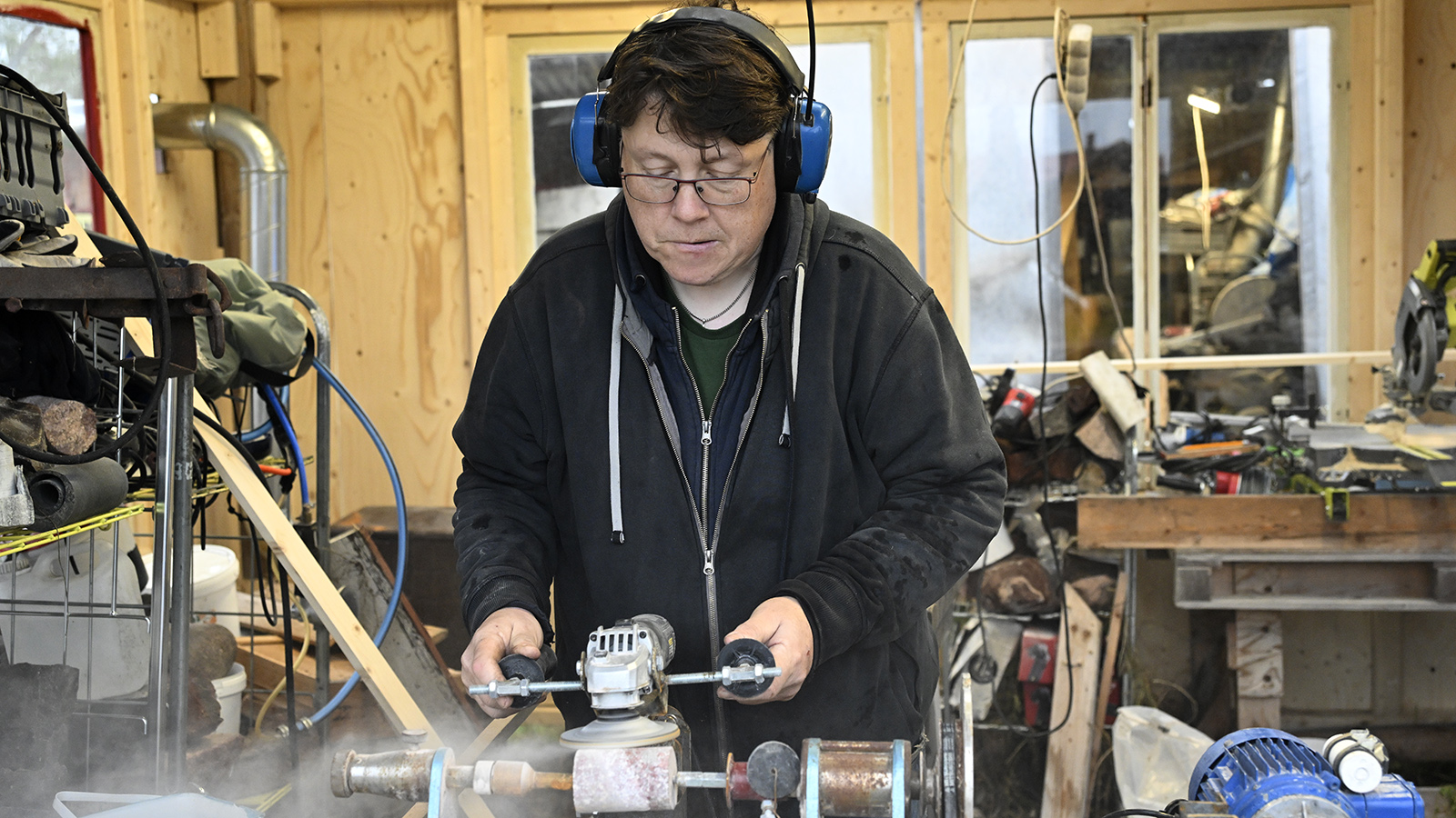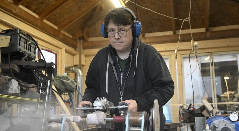 Nu använder Torbjörn inte vattenkraft, utan borrar ur kärnorna, sågar till dem och formar dem med hjälp av maskiner. Sedan återstår slipning i tolv olika moment.