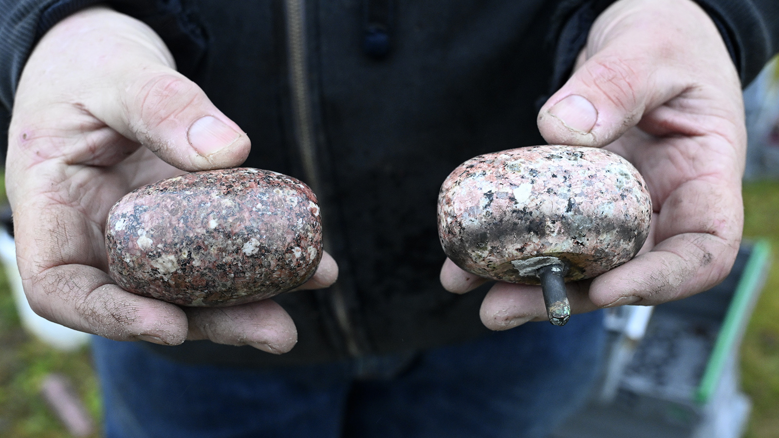 – De klot som från början satt på vasen var lite ljusare, då de kom från ett block som inte kom från Garberg. Det blocket sprack sedan, och ur det använde man bland annat delar till kloten liksom till den gamla bron vid Rotälven.