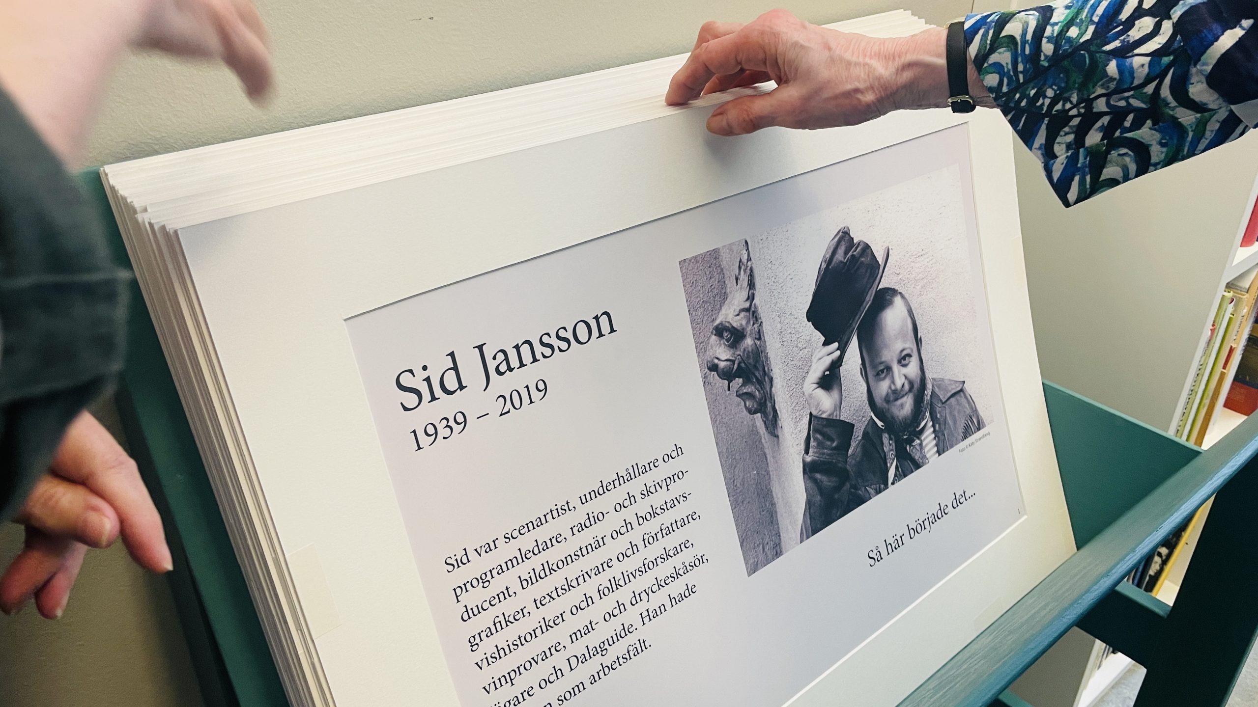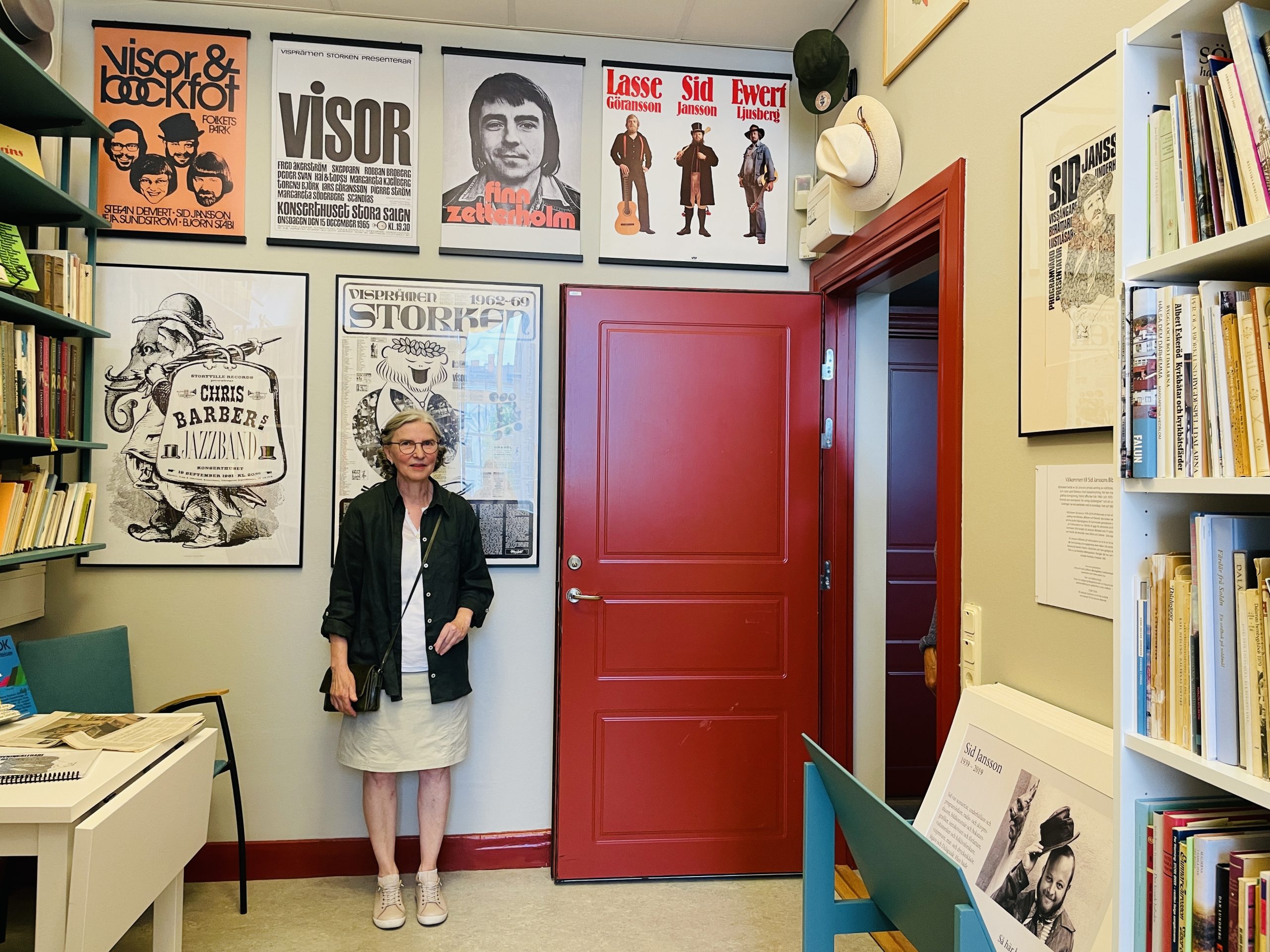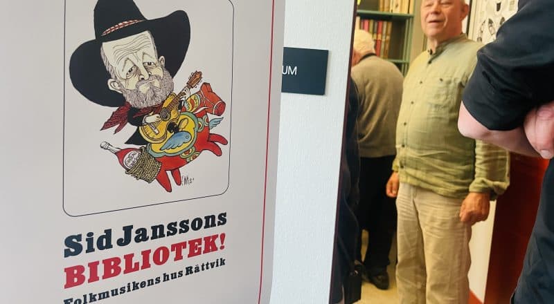 Det var Sids önskan att hans låtskatt och visskatt skulle bli tillgänglig för allmänheten. Nu är hyllorna i rummet fyllda till bredden med texter och på väggarna sitter några av alla de affischer han skapat. När Sid Jansson gick bort 2019 efterlämnade han 17 meter böcker och15 meter skivor som nu hittat ett annat hem.