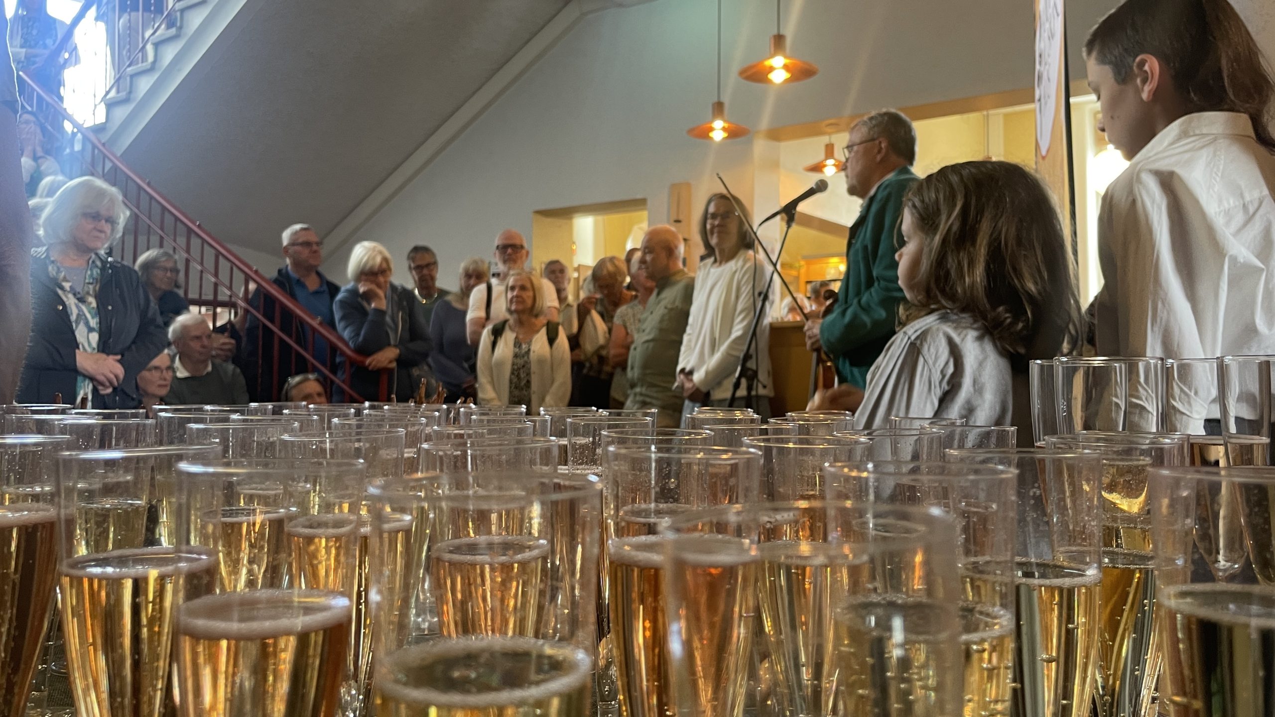 Det var fullsatt i entrén till Folkmusikens hus när Sid Janssons bibliotek invigdes under festliga former under måndagen. Efter visor, tal och musik bjöds det på bubbel och visning av rummet där Sids samling av böcker och texter numer finns bevarade.