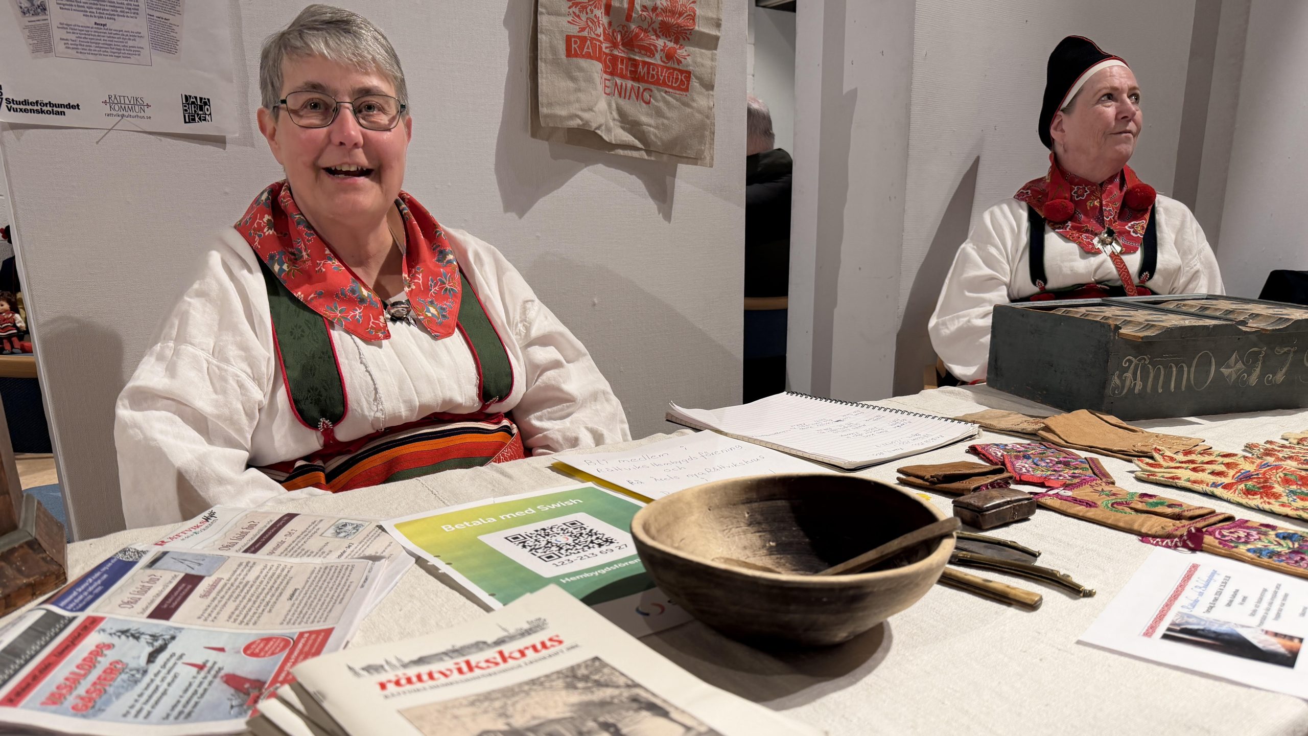 Valkyr var inte den enda förening som lyckades fånga besökarnas intresse och värva nya medlemmar. Vid bordet där Rättviks Hembýgdsförening höll till var många nyfikna på de fina dräkthandskarna och även här kunde föreningen fylla på listan med lite nya namn.