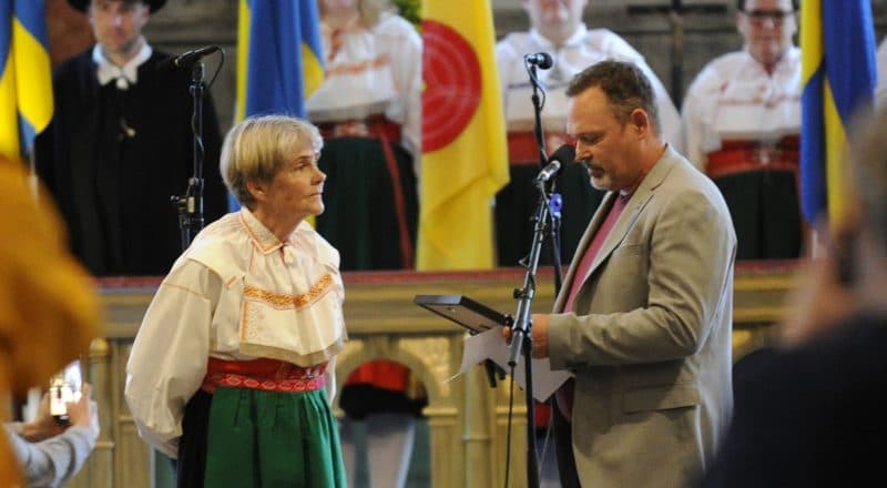 Eva har en gått en tvåårig konstutbildning på Nyckelviksskolan i början av 1970- talet. Därefter har hon haft keramikverkstad i egen regi här i Orsa. Akvarellmålandet upptäckte hon för fem år sedan och eftersom olika tekniker roar henne, så testar hon att måla allt möjligt. Tanken med att måla av delar som hör till Orsadräkten är att avbilda färg, form och mönster som tillhör en dräkt som är stilren och traditionell. Målningar som hon visar på den här utställningen är målade med akvarellfärg på torrt papper.