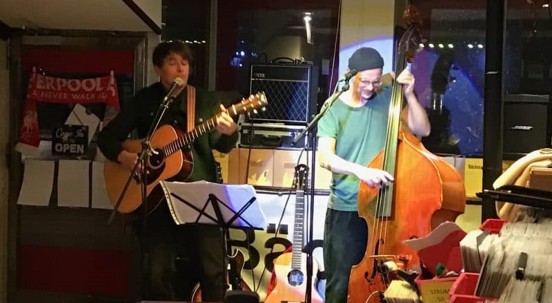 Janne Bäckmans lilla butik i Orsa var konsertsal och där fick 25 personer njuta av spelningen med Peter och kontrabasisten Andreas Nordell.