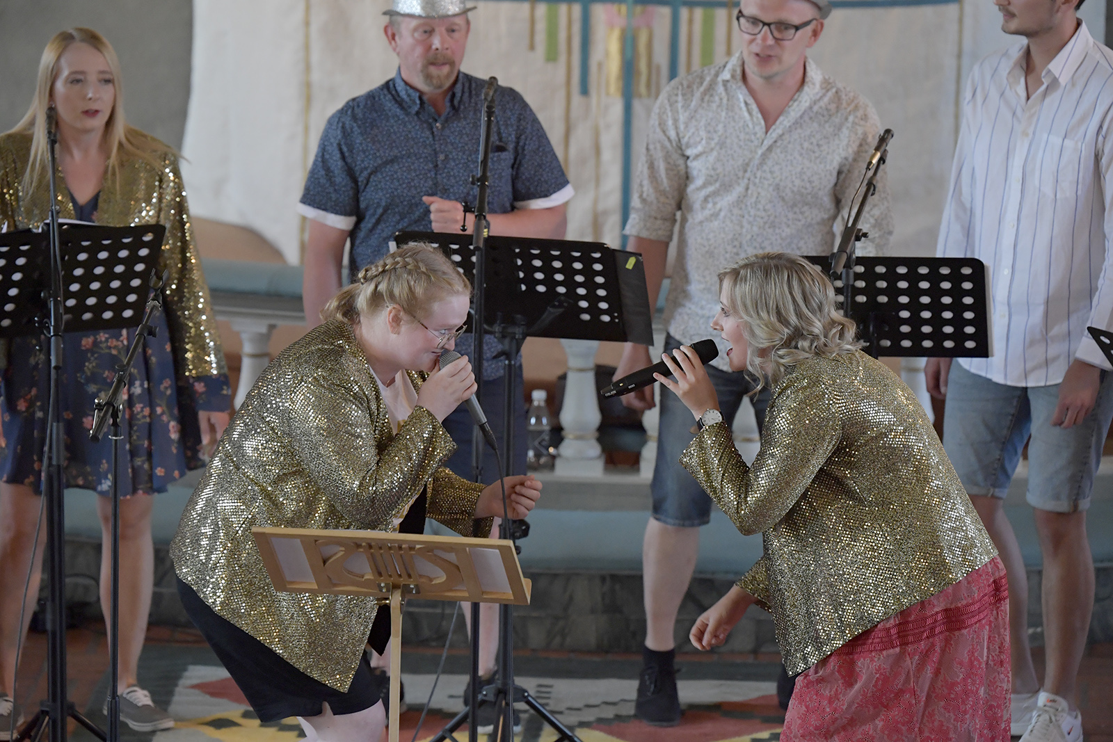 Ytterligare några visor följde innan tempot stegrades med ”Var ska vi sova i natt”, den italienska låten som dansbandet Perikles såg till att den blev ”skånsk”. Nu med Jennifer med gitarr och sångmick medan det blev spontandans i kyrkan.