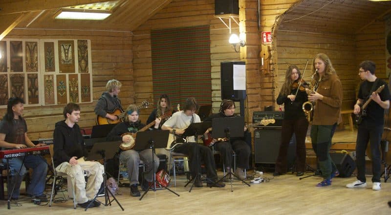 Onsdag eftermiddag gjorde Siljan News ett besök i hembygdsgården i Trunna. Det är full fart på elever och lärare från estetprogrammet i Mora och lärare från Orsa Musikskolan som håller på att rigga upp inför konserten. Lite senare skulle även elever från musikskolan komma.
