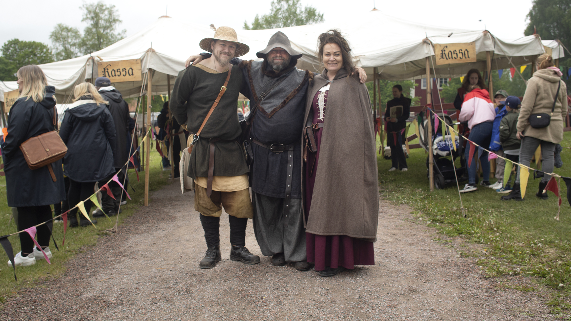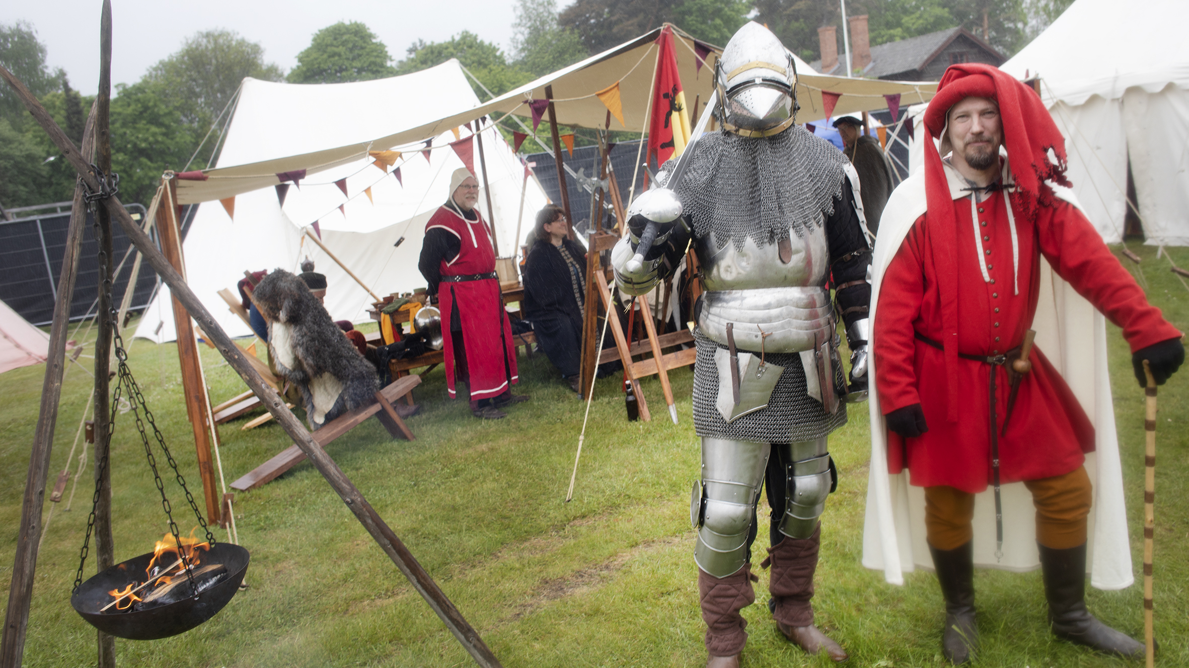 Vädret växlar och under skydd av tältduk sitter Lon af Eken och Greve Grävling med vännerna i sällskapet Living Hema med säte i Norrköping. De underhåller flera gånger om dagen med sina svärd-och sköldkamper på gräsytan innan för entrén. Ut ifrån ett av boningstälten bredvid kommer Hogvin Svinhufvud i full stridsmundering, snart ska han strida inför publik.